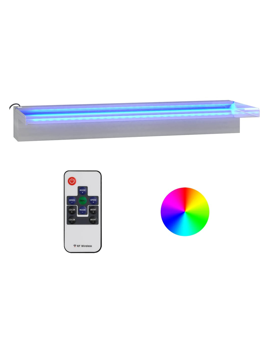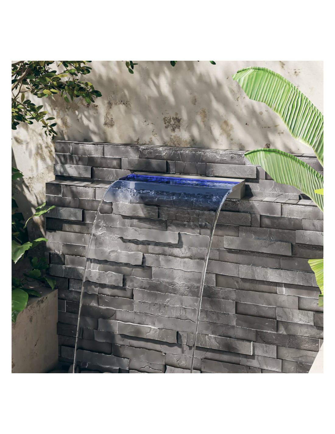 Questo sfioratore a cascata con luci LED colorate è un'aggiunta decorativa al vostro laghetto o alla vostra piscina. Acquistatene uno ora e godetevi il suono e la vista dell'acqua che cade!