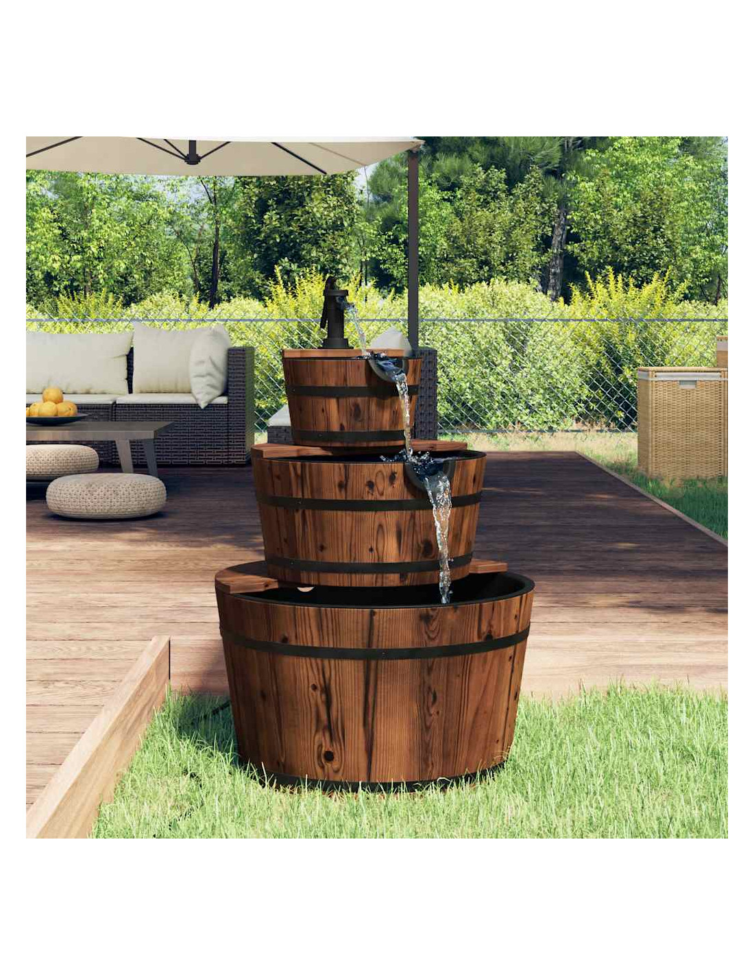 Questa fontana d'acqua in legno è un complemento eccellente al vostro cortile, patio e giardino, che regala alla vostra dimora un paesaggio unico.