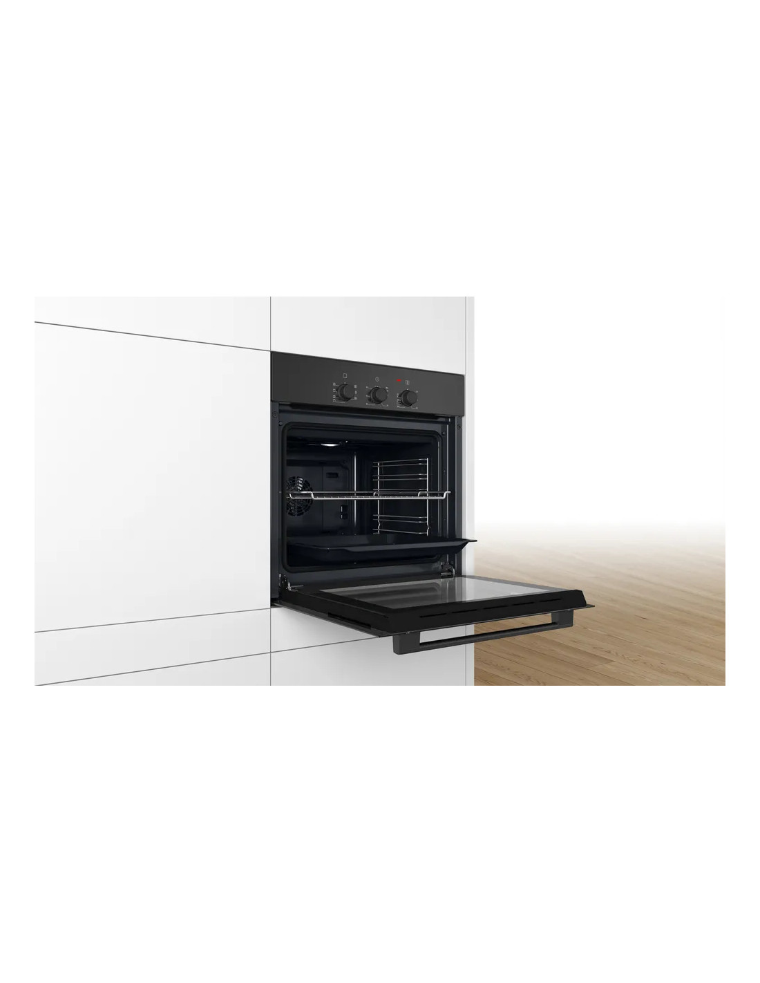 Bosch Serie 2 HBF011BA2 Forno multifunzione Nero Classe A. Dimensione del forno: Media, Tipo di forno: Forno elettrico, Capacità interna forno totale: 66 L. Posizionamento dell'apparecchio: Da incasso, Colore del prodotto: Nero, Tipo di controllo: Manopola. Timer da 30 minuti: 60 min, Modalità di impostazione del timer: Timer. Classe efficienza energetica: A, Consumo energetico (convenzionale): 0,98 kWh, Consumo energetico (convezione forzata): 0,79 kWh. Quantità lampade: 1 lampada(e)