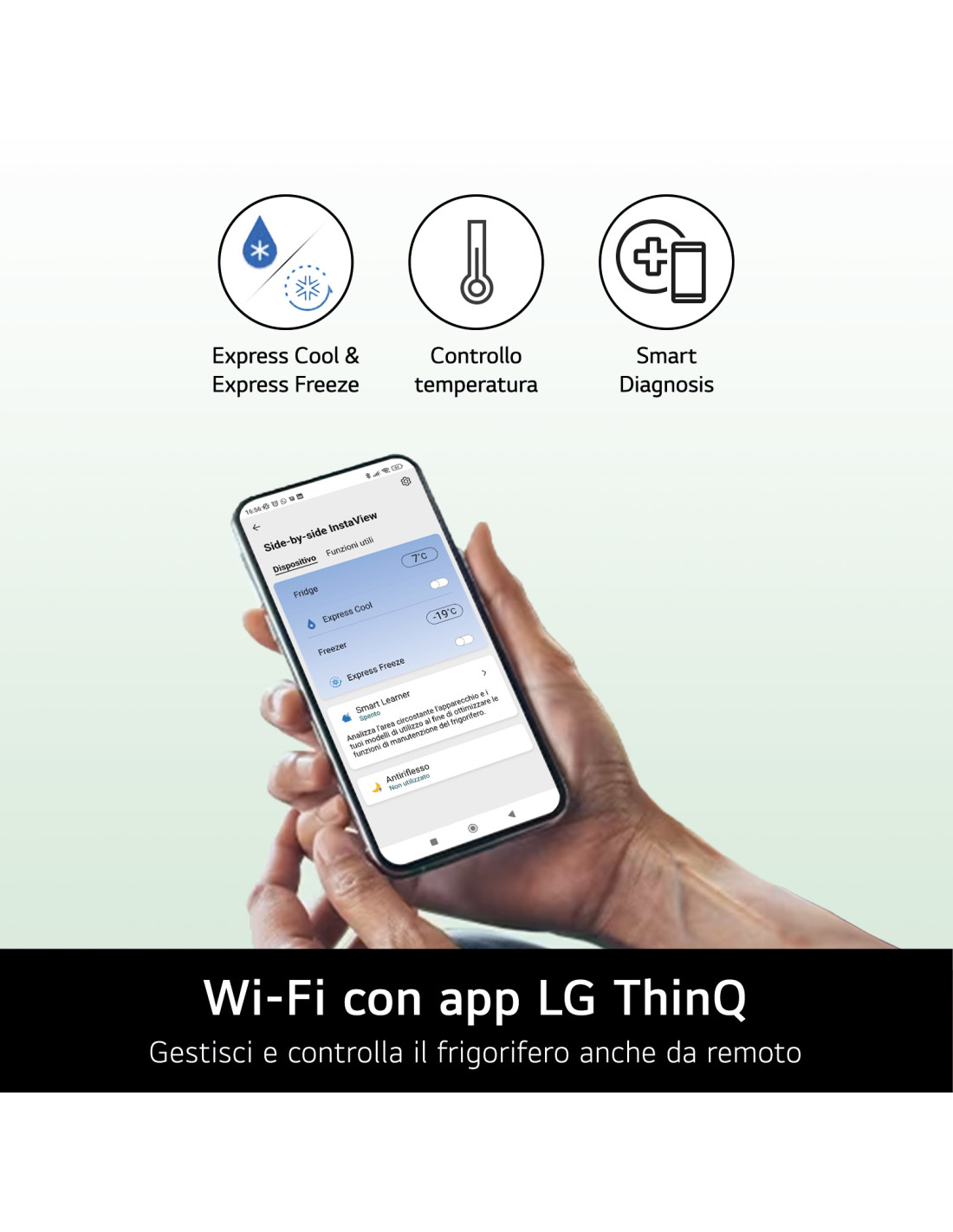 Con uno smartphone compatibile e l'app LG Smart ThinQ™ puoi regolare le impostazioni della temperatura da remoto per conservare in frigo una grande varietà di cibi.