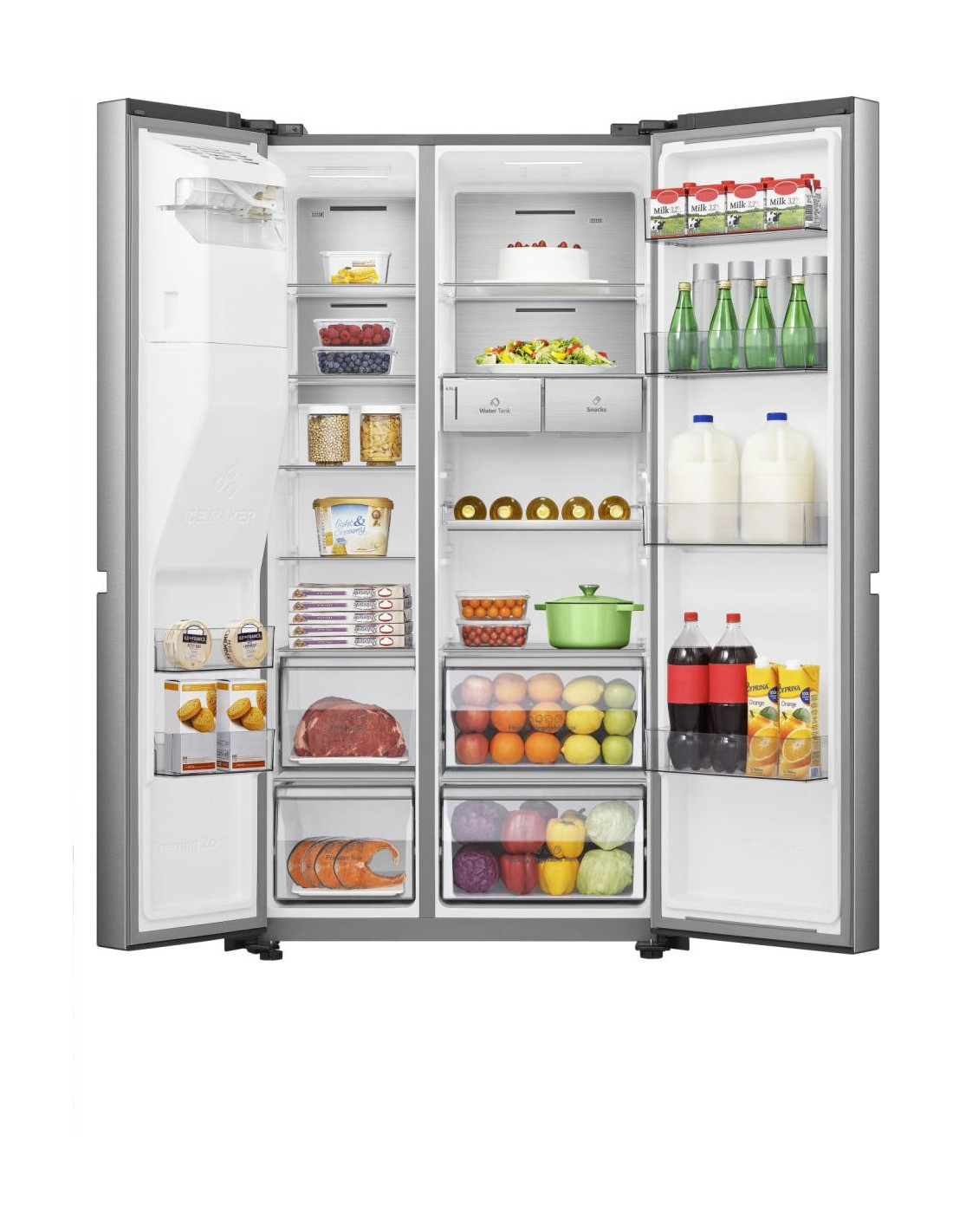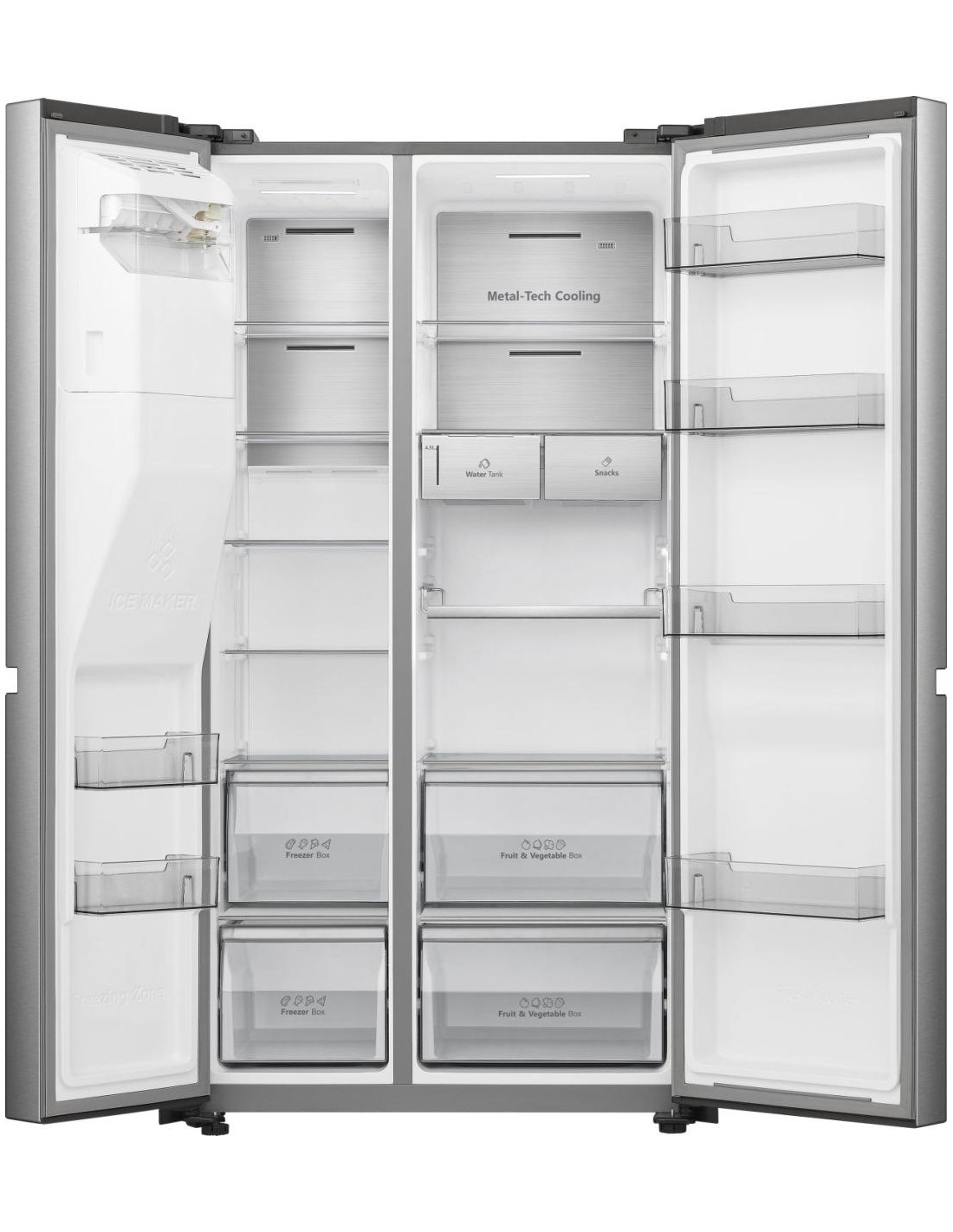 •Grande capacità: I frigoriferi ad alta capacità di Hisense ti assicurano di conservare qualsiasi forma, dimensione o tipo di cibo, soddisfacendo tutte le tue esigenze di spesa settimanale. Accolgono comodamente fino a 632 litri alla volta. Il suo design con porte affiancate ti assicurerà di trovare tutto ciò di cui hai bisogno a colpo d'occhio.