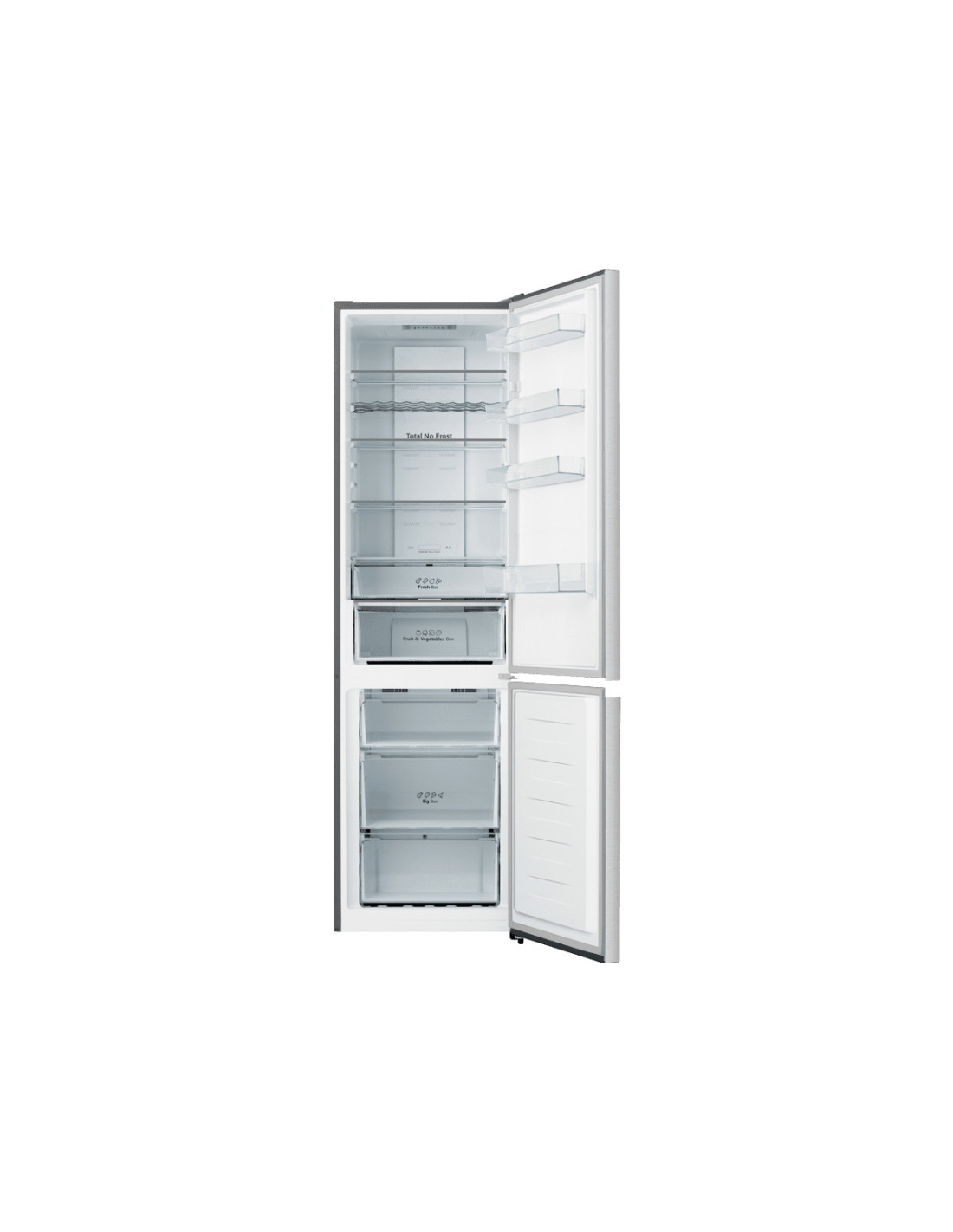 Hisense RB440N4BCE. Capacità netta totale: 336 L. Cerniera porta: Destra, Tipo di display: LED. Classe climatica: N-ST, Emissione acustica: 39 dB. Capacità netta frigorifero: 238 L, Sistema Multi-Airflow (frigorifero), Luce interna, Numero di ripiani frigorifero: 4, Numero di cassetti per verdura: 2. Capacità netta congelatore: 98 L, Capacità di congelamento: 6 kg/24h. Classe efficienza energetica: E, Consumo energetico annuo: 247,47 kWh. Colore del prodotto: Acciaio inox