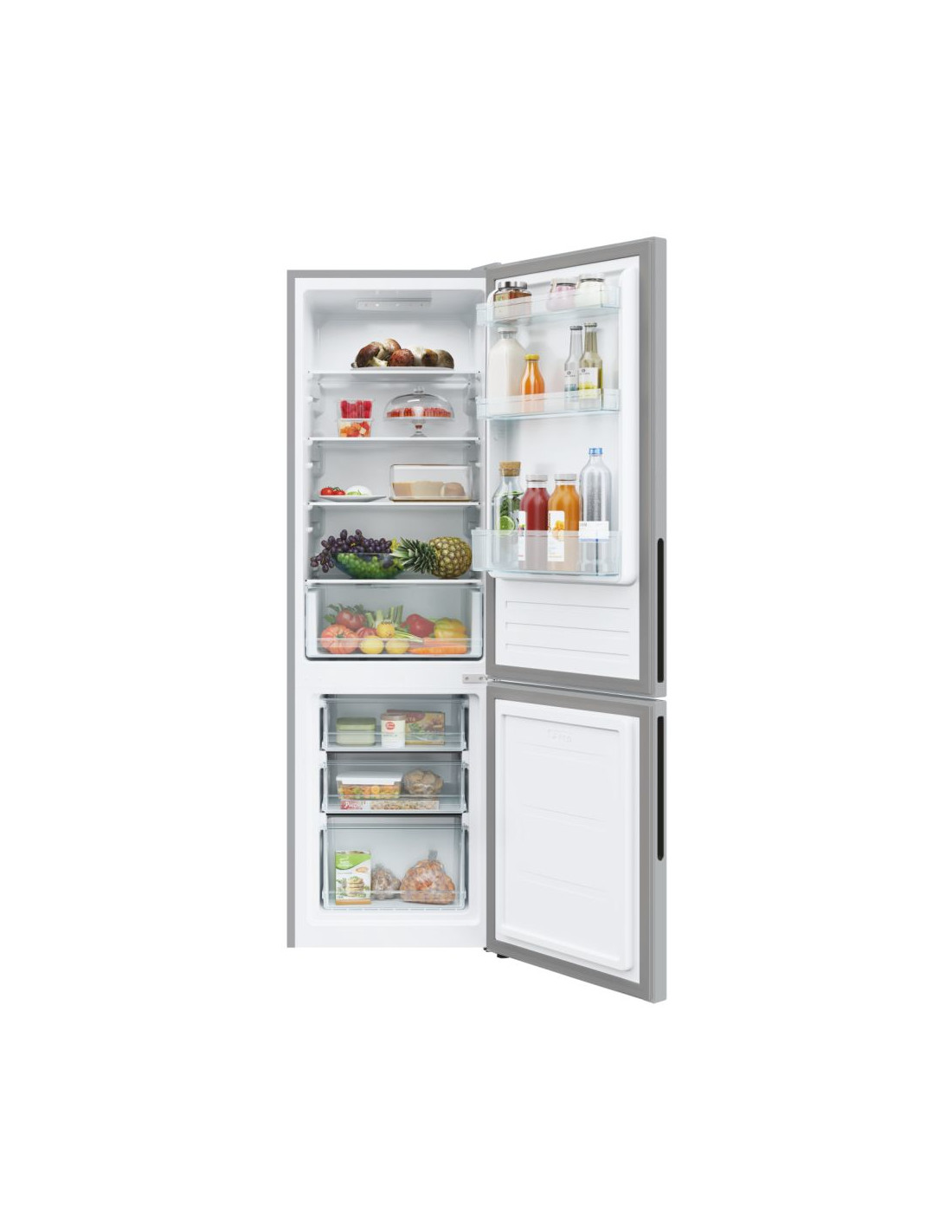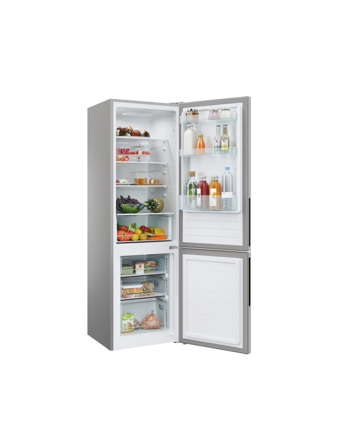 Candy City Combi CCT3L517ES. Capacità netta totale: 260 L. Cerniera porta: Destra. Classe climatica: N-ST, Emissione acustica: 39 dB. Capacità netta frigorifero: 186 L, Luce interna, Numero di ripiani frigorifero: 4, Numero di cassetti per verdura: 1. Capacità netta congelatore: 74 L, Capacità di congelamento: 3,3 kg/24h. Classe efficienza energetica: E, Consumo energetico annuo: 214 kWh. Colore del prodotto: Argento