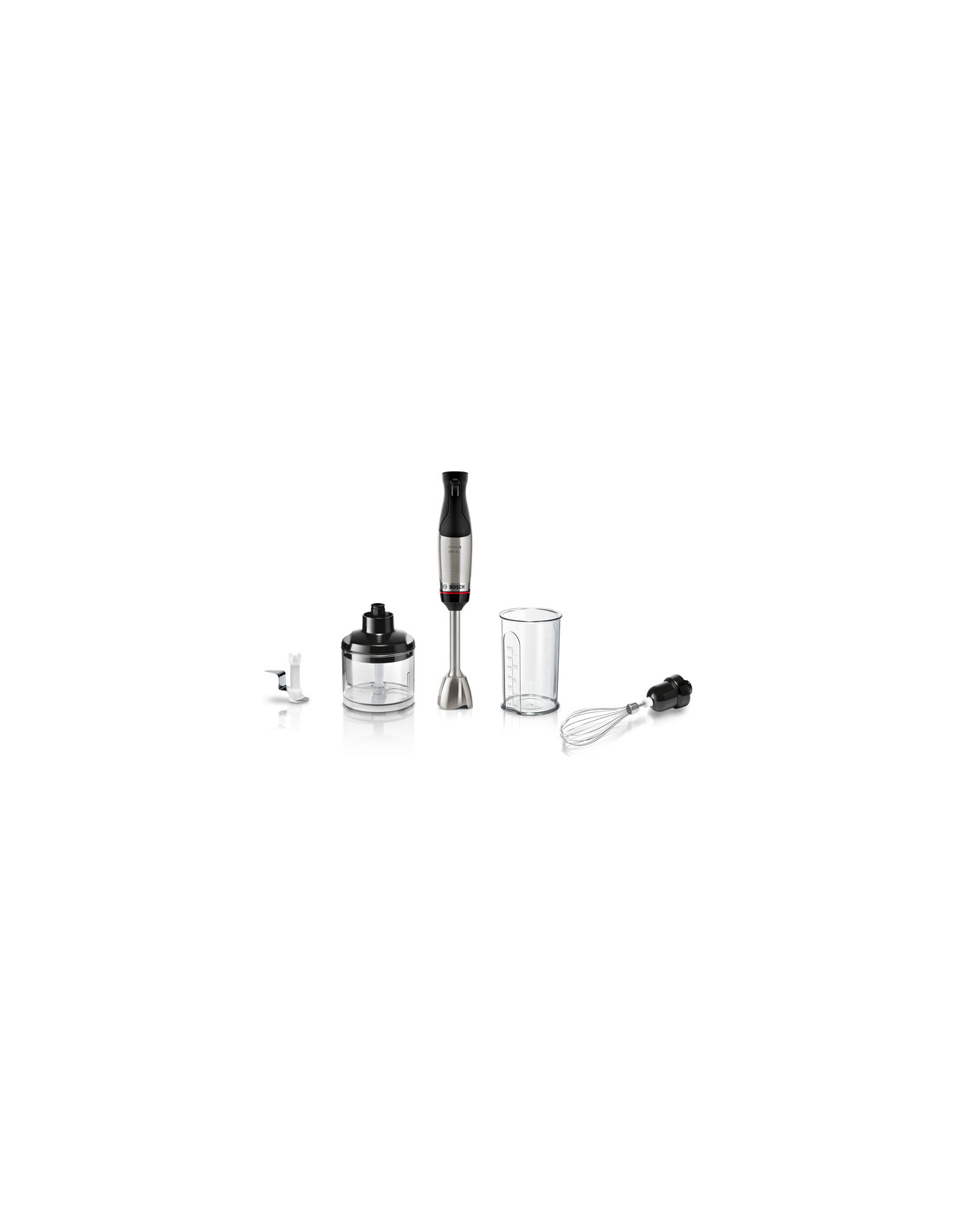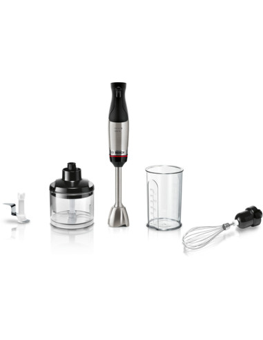 Bosch Serie 6 MSM6M622 Frullatore a immersione ErgoMaster 1000 W Inox. Tipo: Frullatore per cottura, Colore del prodotto: Nero, Acciaio inox, Nome del colore: Acciaio inox. Capacità ciotola: 0,6 L, Tipo di controllo: Pulsanti. Materiale della scocca: Plastica, Acciaio inox. Potenza: 1000 W, Alimentazione: AC, Tensione di ingresso AC: 220 - 240 V. Larghezza: 60 mm, Profondità: 78 mm, Altezza: 395 mm