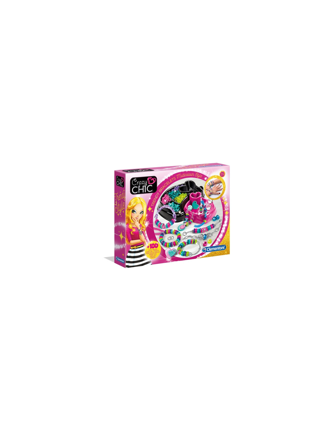 Un kit esclusivo per realizzare creazioni uniche ed essere sempre alla moda! Un kit esclusivo per realizzare creazioni uniche ed essere sempre alla moda! Il gioco contiene 100 anellini in plastica colorata, altri con finitura metallica, nastri in lycra glitterata e catenine da assemblare per creare bracciali glamour! Con pratico macchinario per infilare facilmente gli anellini! Per realizzare gioielli con effetto multicolor in tantissime combinazioni diverse!