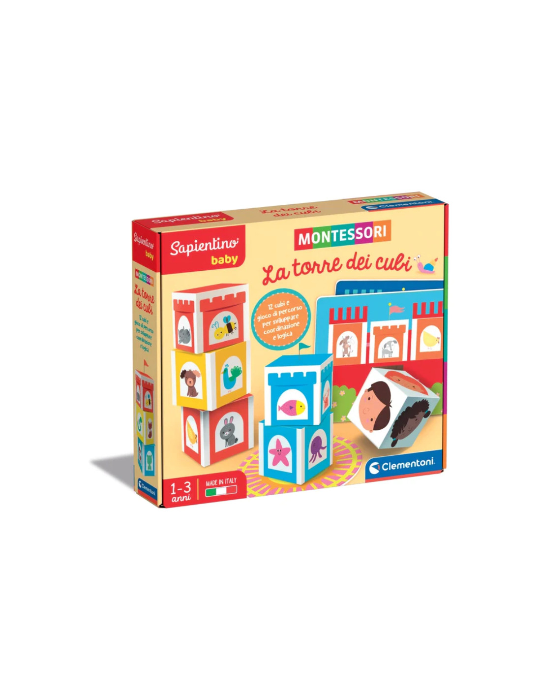 I cubi sono illustrati su ogni lato e vanno impilati a seconda dell'habitat di riferimento (fattoria, savana, bosco e mare).