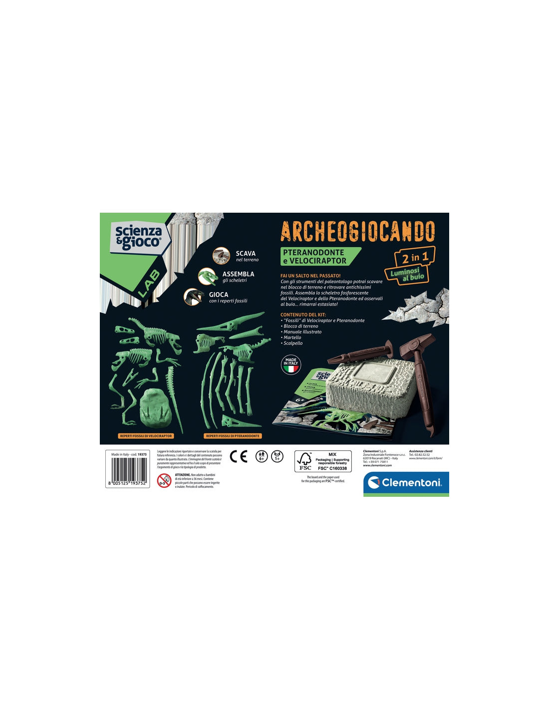 Con questo kit scientifico potrai scoprire i due temibili dinosauri: Velociraptor e Pteranodonte. Scava nei blocchi di terreno e recupera i fossili. Rivivi l'era Giurassica grazie alla realtà aumentata! Con l'app gratuita basta inquadrare con tablet o smartphone le carte contenute nel kit per far rivivere le creature leggendarie e scoprire così l’ambiente in cui sono vissute. Divertiti con gli effetti speciali, scatta tante foto, personalizzale e condividile! La confezione contiene martello e scalpello, per diventare un vero paleontologo.