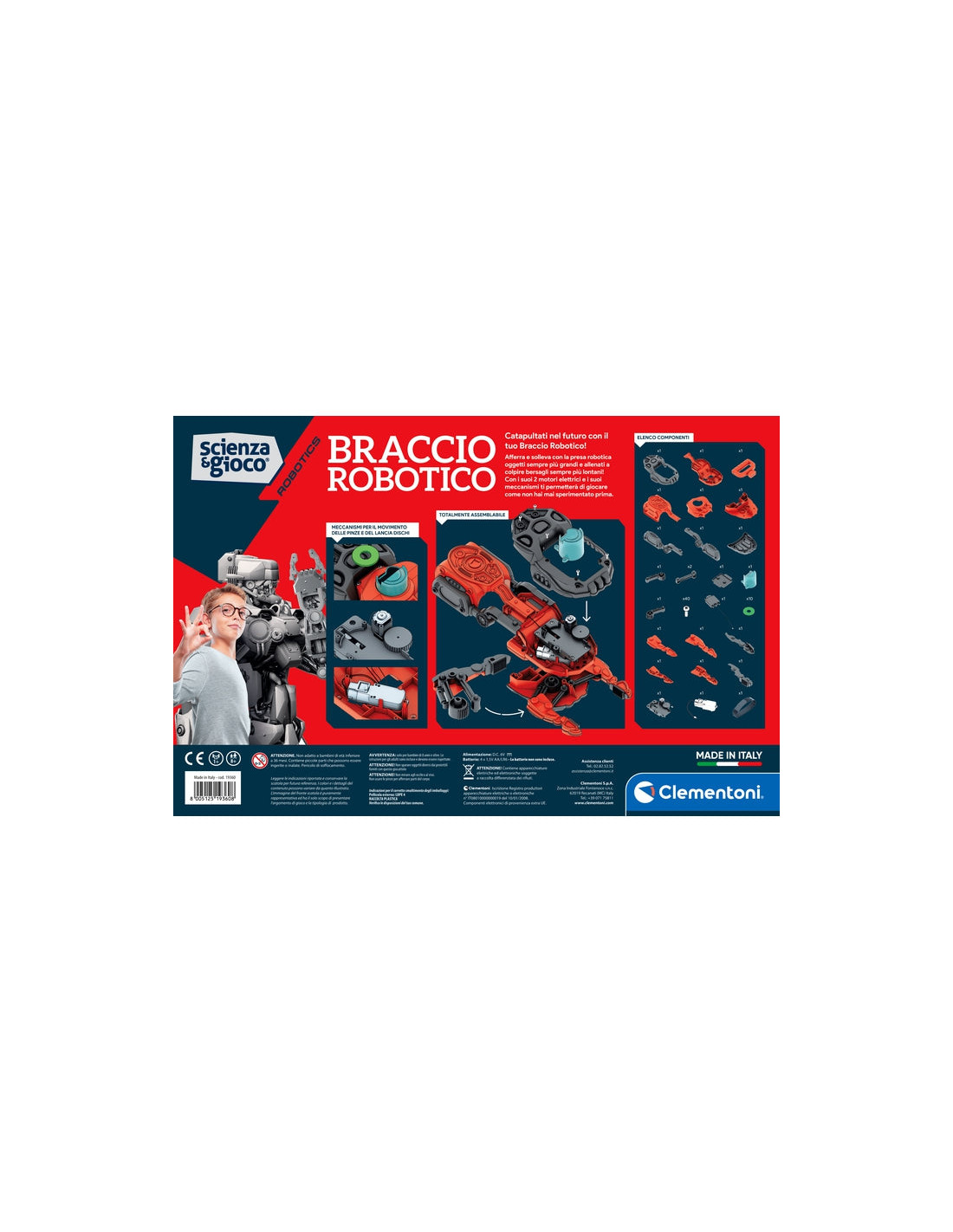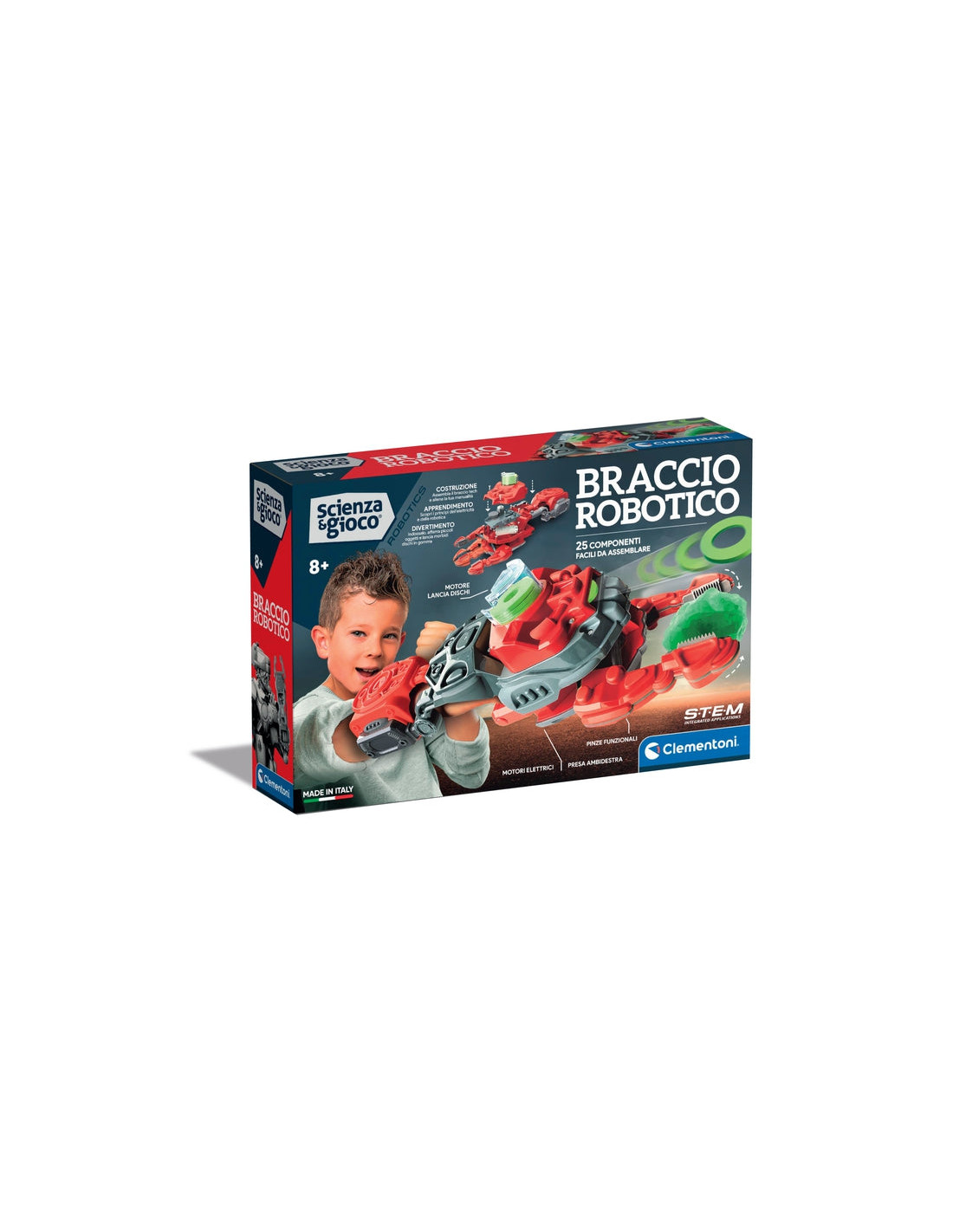 Vesti i panni di un supereroe con questa futuristica armatura! Indossa il braccio robotico completamente motorizzato e lanciati in mille avventure. Tante parti da assemblare e circuiti elettrici da collegare per apprendere i principi della robotica. I comandi integrati nella maniglia ambidestra permettono di controllare facilmente la pinza meccanica e lo spara dischi. Dischi morbidi da sparare in tutta sicurezza contro vari bersagli inclusi. Spara con il lanciadischi e afferra gli oggetti con le pinze motorizzate!