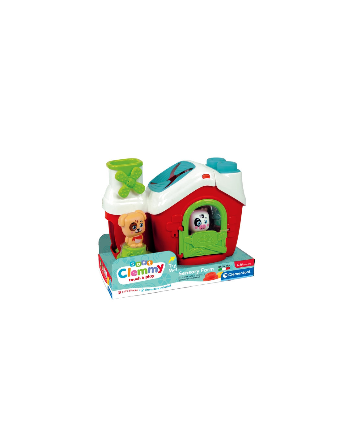 La fattoria sensoriale contiene al suo interno tanti morbidi Clemmy che possono essere impilati, manipolati e inseriti facilmente nelle finestre e dal tetto.