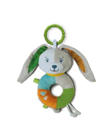 Un morbido coniglietto sonaglino tutto da coccolare! Facile da impugnare il coniglietto è ideale per stimolare e intrattenere i più piccoli. Con diversi tessuti e colori vivaci supporta lo sviluppo della percezione visiva, uditiva e la manualità. Il pratico anello può essere agganciato in più punti, per appendere il coniglietto ovunque e portarlo sempre con sè. Ideato, progettato e sviluppato in Italia.