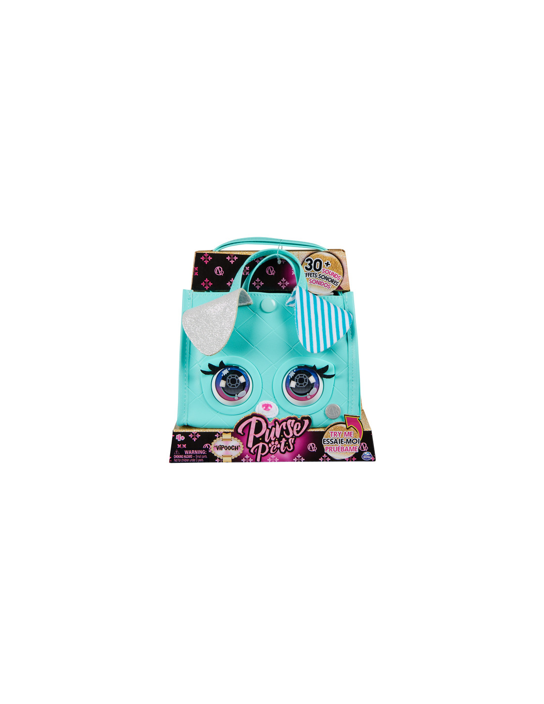 Dai vita al tuo look con le borsette Purse Pets. Queste borsette in versione Tote Perfect interattive sono ricche di personalità. Reagiscono al tuo tocco, sbattono le palpebre per davvero e dispongono di oltre 30 suoni e reazioni. La Tote Perfect cagnolino è caratterizzata da un tessuto in finta pelle intrecciata color verde acqua, orecchie da cucciolo color argento metallico e a strisce, occhi ispirati allo stile pop art e chiusura a scatto. Grazie alla doppia cinghia, puoi indossarla a braccio o estendere la cinghia lunga per indossarla a spalla o a tracolla. Mentre sei in movimento, toccale la testa per attivare suoni divertenti e farle sbattere le ciglia. Premile delicatamente la fronte e ti manderà un bacio. Premi il simbolo per sbloccare altre modalità di gioco. Gioca e balla a ritmo di musica nella Modalità magica. Sfida la tua amica del cuore in una gara di sguardi e sfoggia il tuo look da sfilata, ti risponderà con entusiasmo. Misura circa 12,5 x 15 x 5 cm; 3 pile AAA incluse. Esprimi il tuo stile con le Purse Pets Tote Perfect.