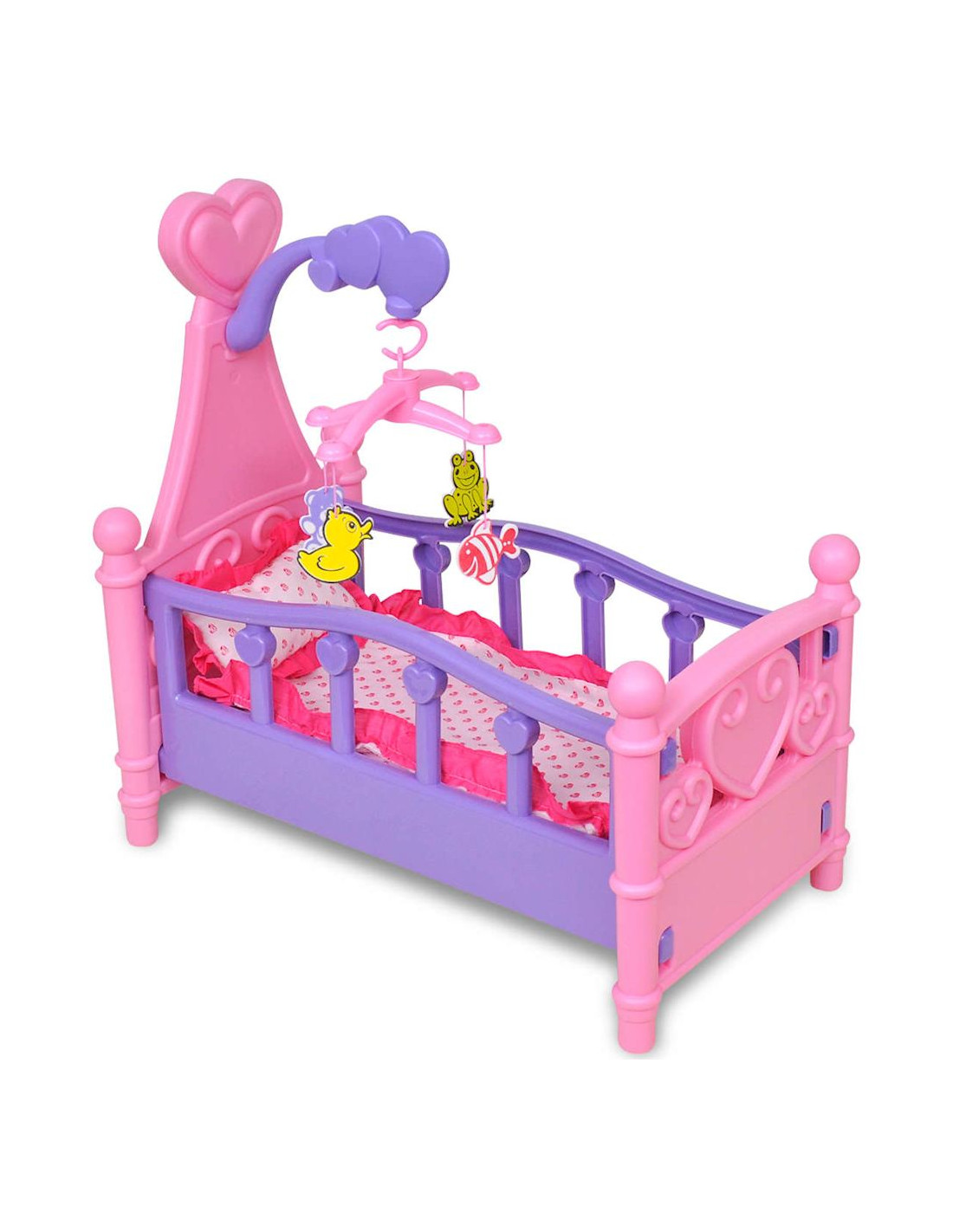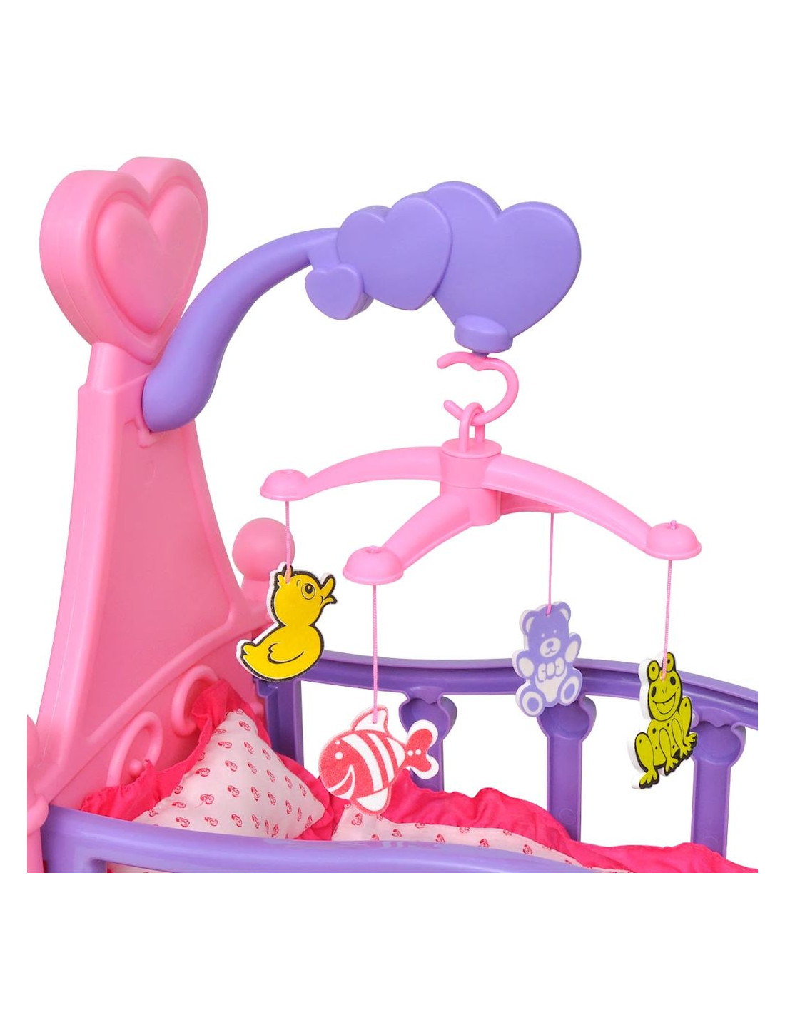 - La consegna include: 1 x culla per bambole, 1 x cuscino, 1 x copriletto e 1 x culla mobile con 4 giocattoli rotanti