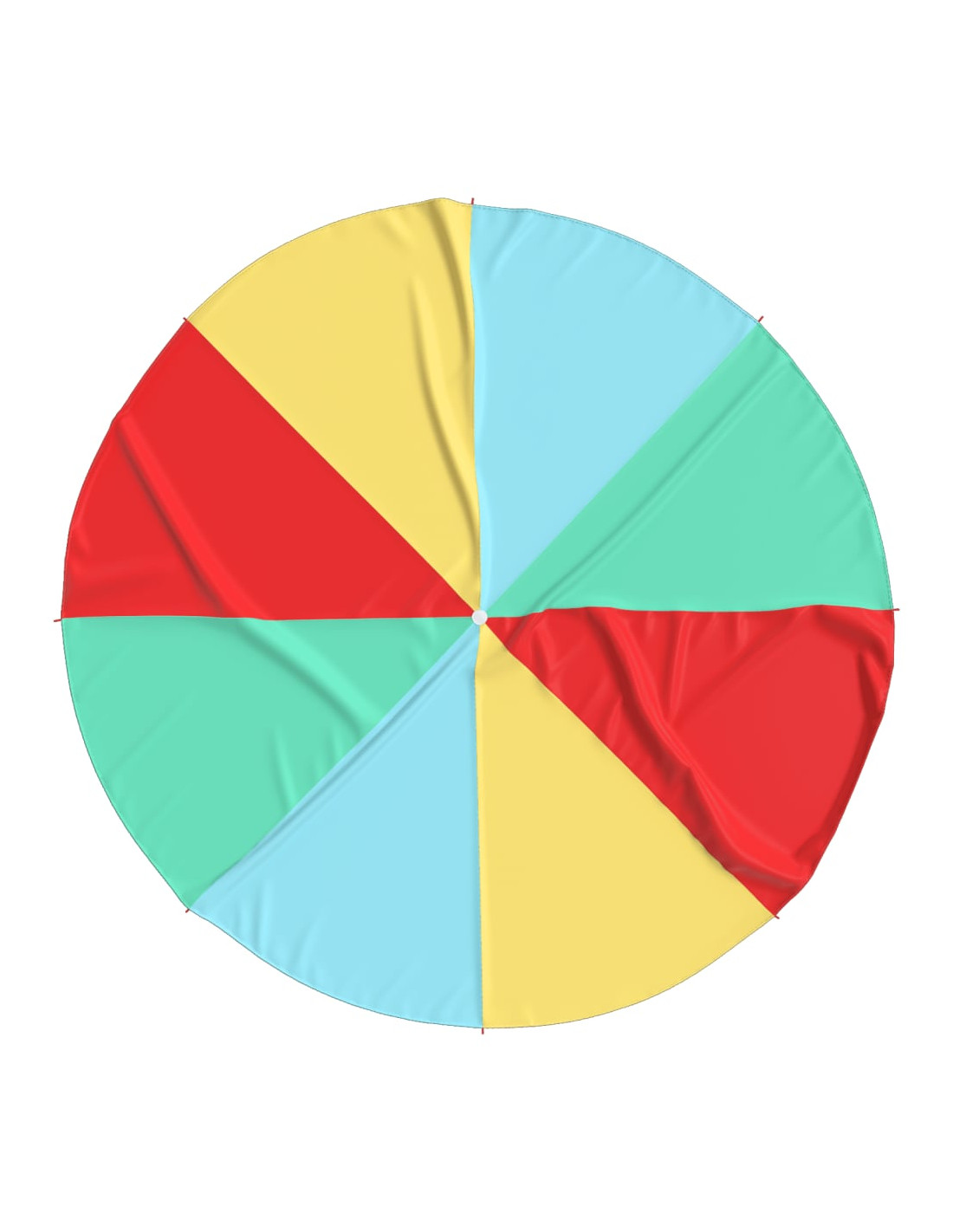 - Colori accattivanti: Il paracadute ludico è un'attrazione accattivante per i bambini, poiché è colorato di rosso, verde, giallo, e blu. Stimola la cooperazione e il lavoro di squadra, il che lo rende l'articolo ideale per le attività di gruppo.