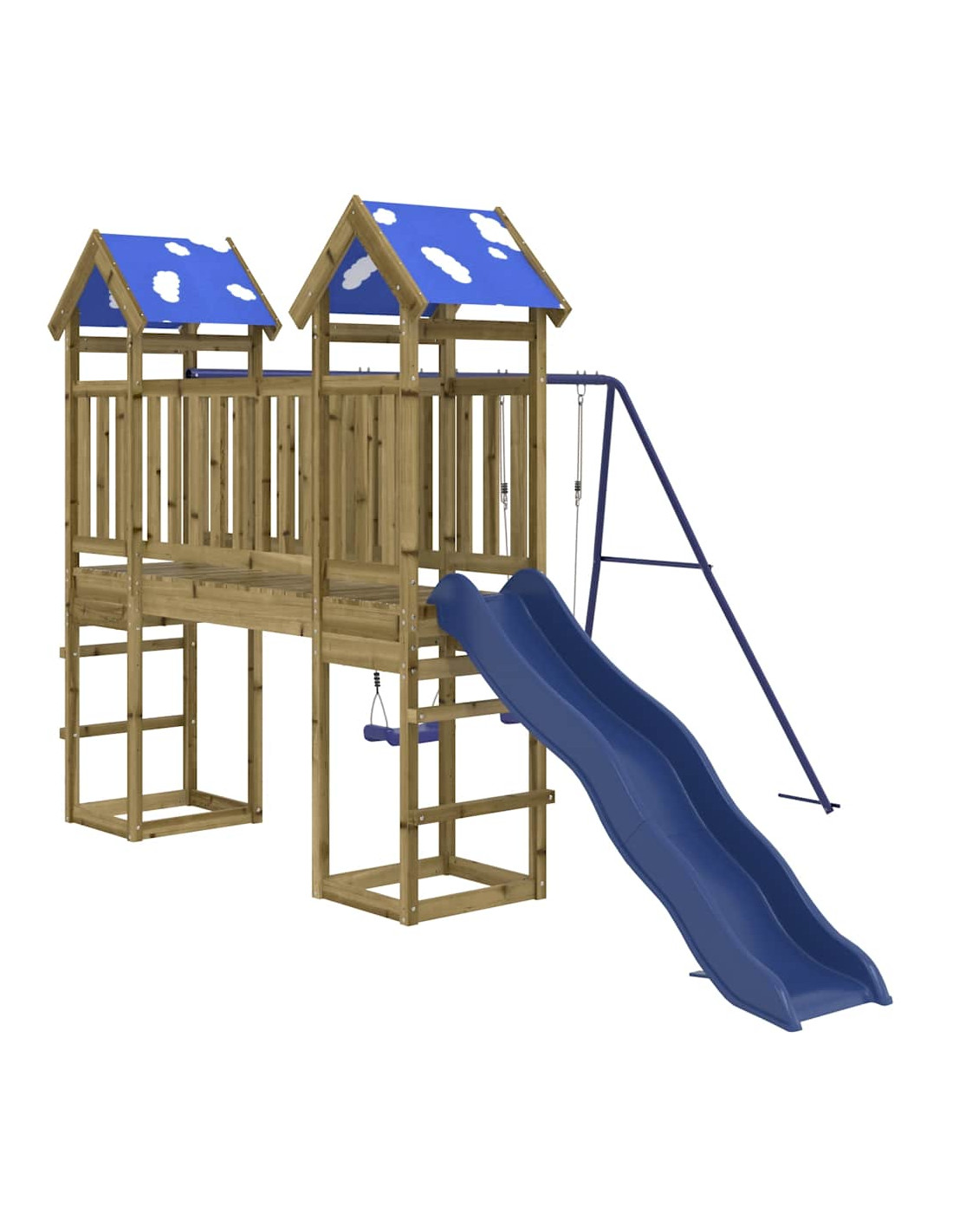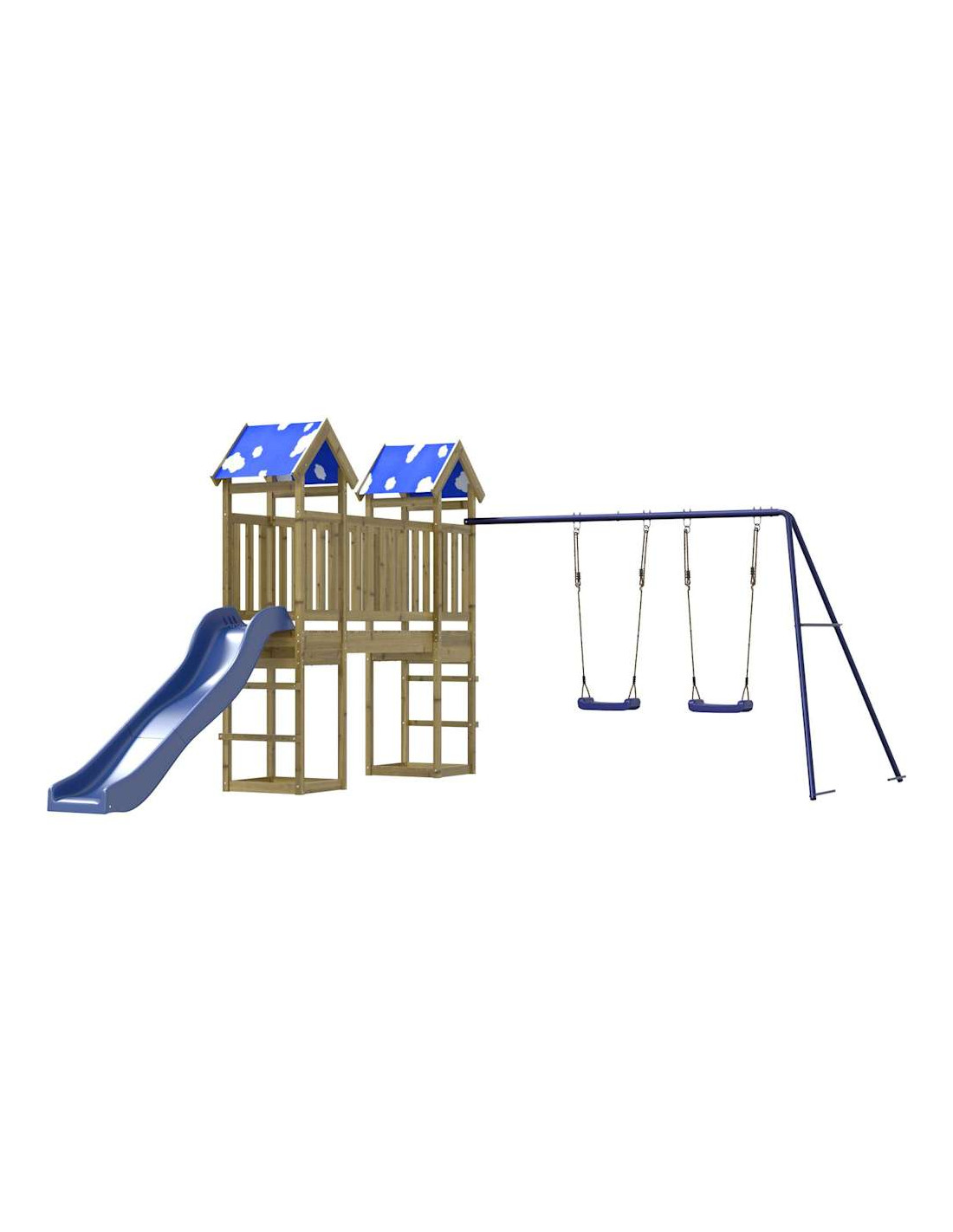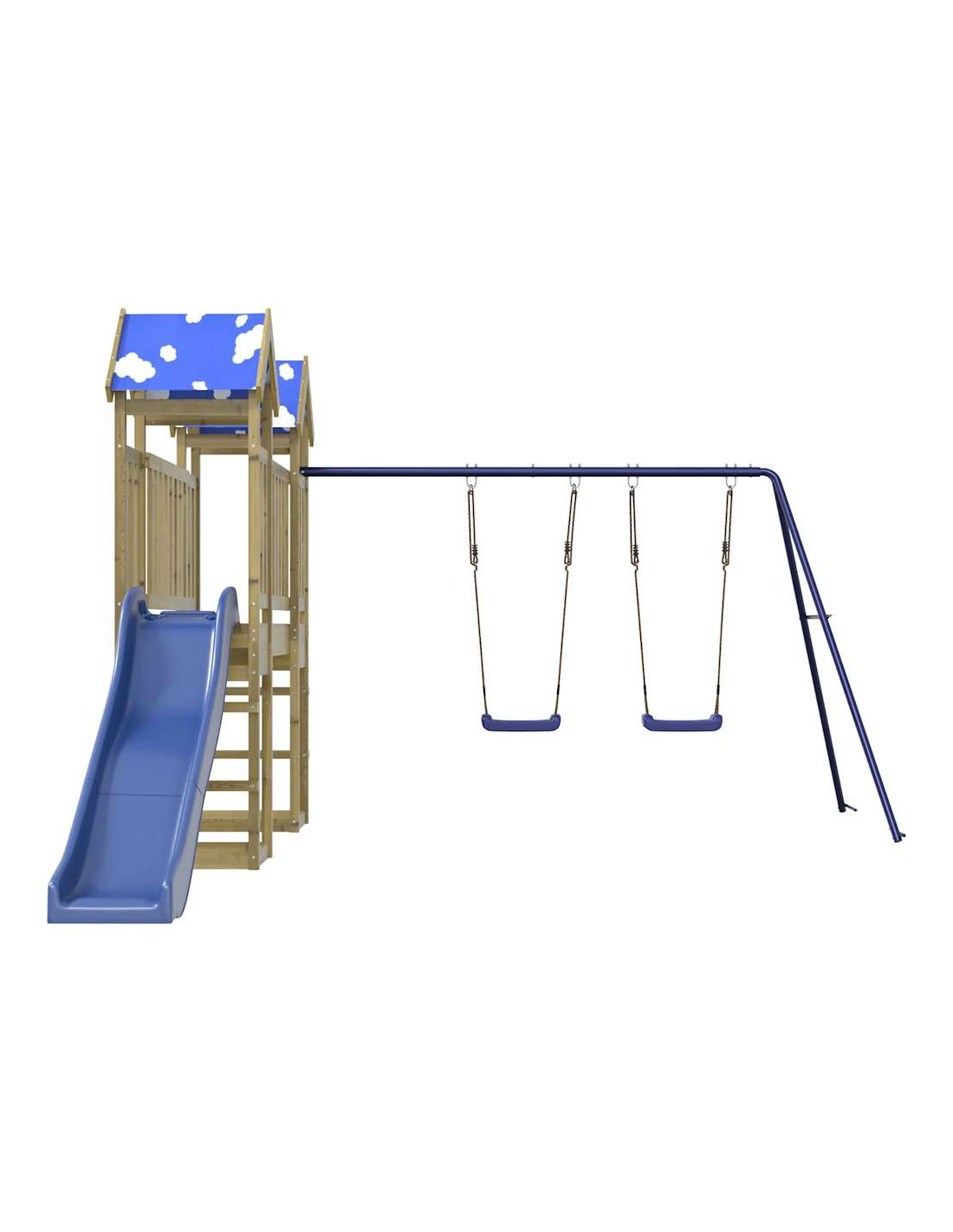 - Centri multiattività: Il parco giochi è dotato di una piattaforma di 90 cm di altezza e si distingue per lo scivolo ondulato, il set di 2 altalene e sabbiere. I vostri piccoli possono anche invitare i loro amici a unirsi al divertimento.