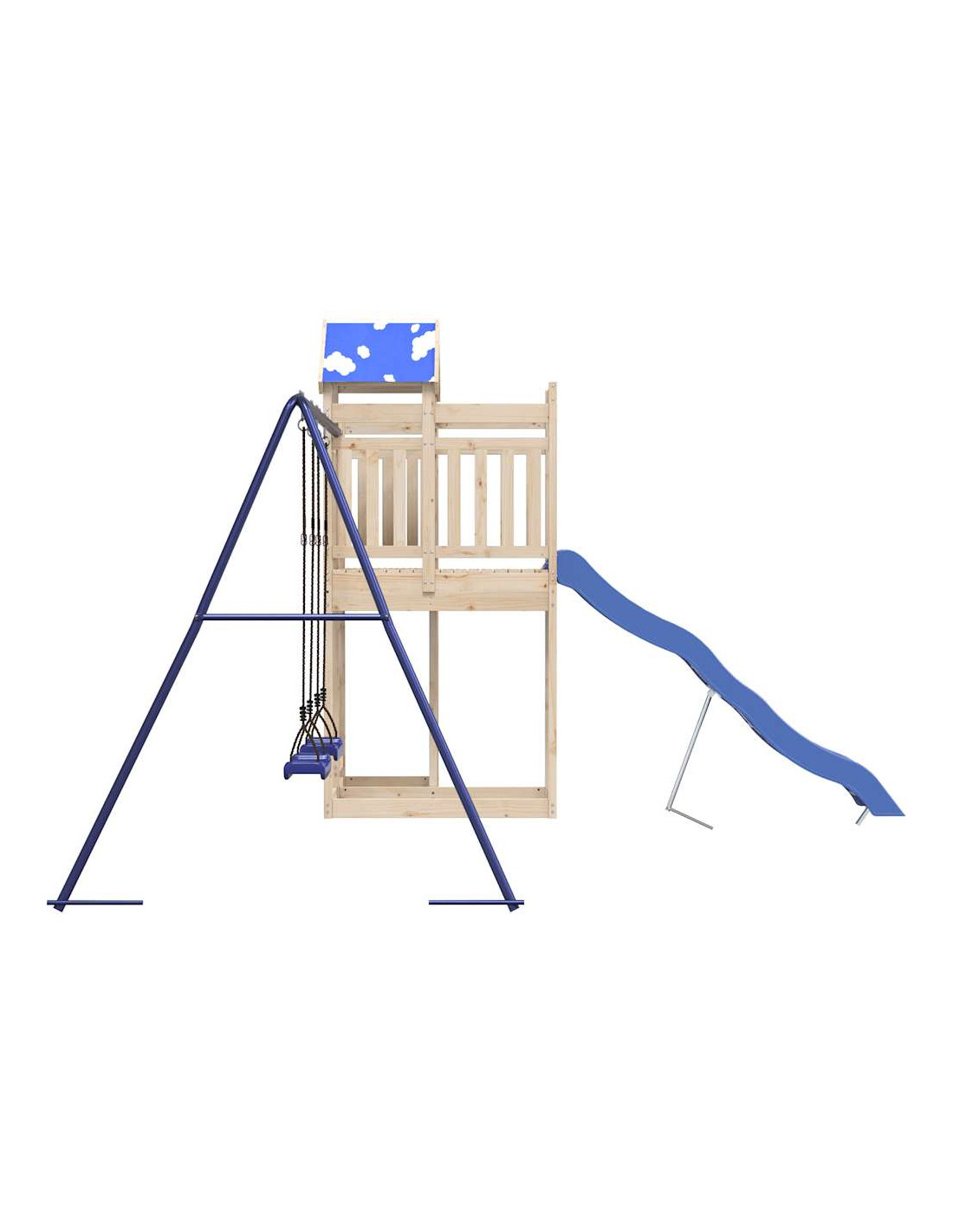 Volete dare ai vostri figli la libertà di giocare a casa? Questo set da gioco per esterni in legno trasforma il vostro cortile in un parco giochi per avventure fantasiose! Materiale durevole: Questo parco giochi da giardino è realizzato in legno massello di pino. Il legno massello di pino è noto per la sua resistenza e durata. Le sue venature dritte e i suoi nodi caratteristici contribuiscono al suo fascino rustico.Telaio robusto in legno: La struttura in legno della casetta da giardino garantisce robustezza e stabilità. Inoltre, le gambe a forma di "A" dell'altalena per bambini consentono l'equilibrio.Centri multiattività: Il parco giochi è dotato di una piattaforma di 118 cm di altezza e si distingue per lo scivolo ondulato, il set di altalene doppie e sabbiere. I vostri piccoli possono anche invitare i loro amici a unirsi al divertimento.Design accurato: le ringhiere in legno circostanti sono progettate per garantire la sicurezza dei bambini durante il loro gioco felice. Inoltre, il tetto con le nuvole offre ombra ai vostri bambini nelle calde giornate estive.Divertimento senza fine: Questo divertente set da gioco da esterno in legno è il modo perfetto per far divertire i vostri bambini e i loro amici, per avere più tempo interattivo e per creare ricordi per voi e i vostri bambini! Avvertenza:Solo per uso domesticoUso esternoNon adatta per bambini di età inferiore ai 3 anniEtà consigliata: 3-8 anni