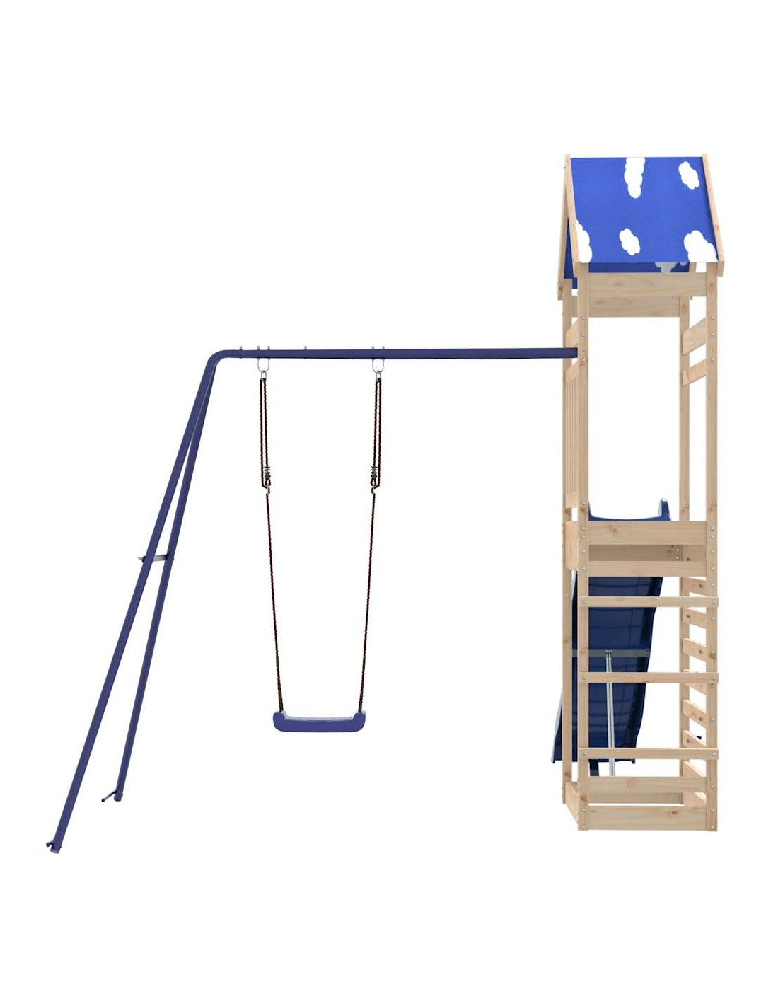 - Materiale durevole: Questo parco giochi da giardino è realizzato in legno massello di pino. Il legno massello di pino è noto per la sua resistenza e durata. Le sue venature dritte e i suoi nodi caratteristici contribuiscono al suo fascino rustico.