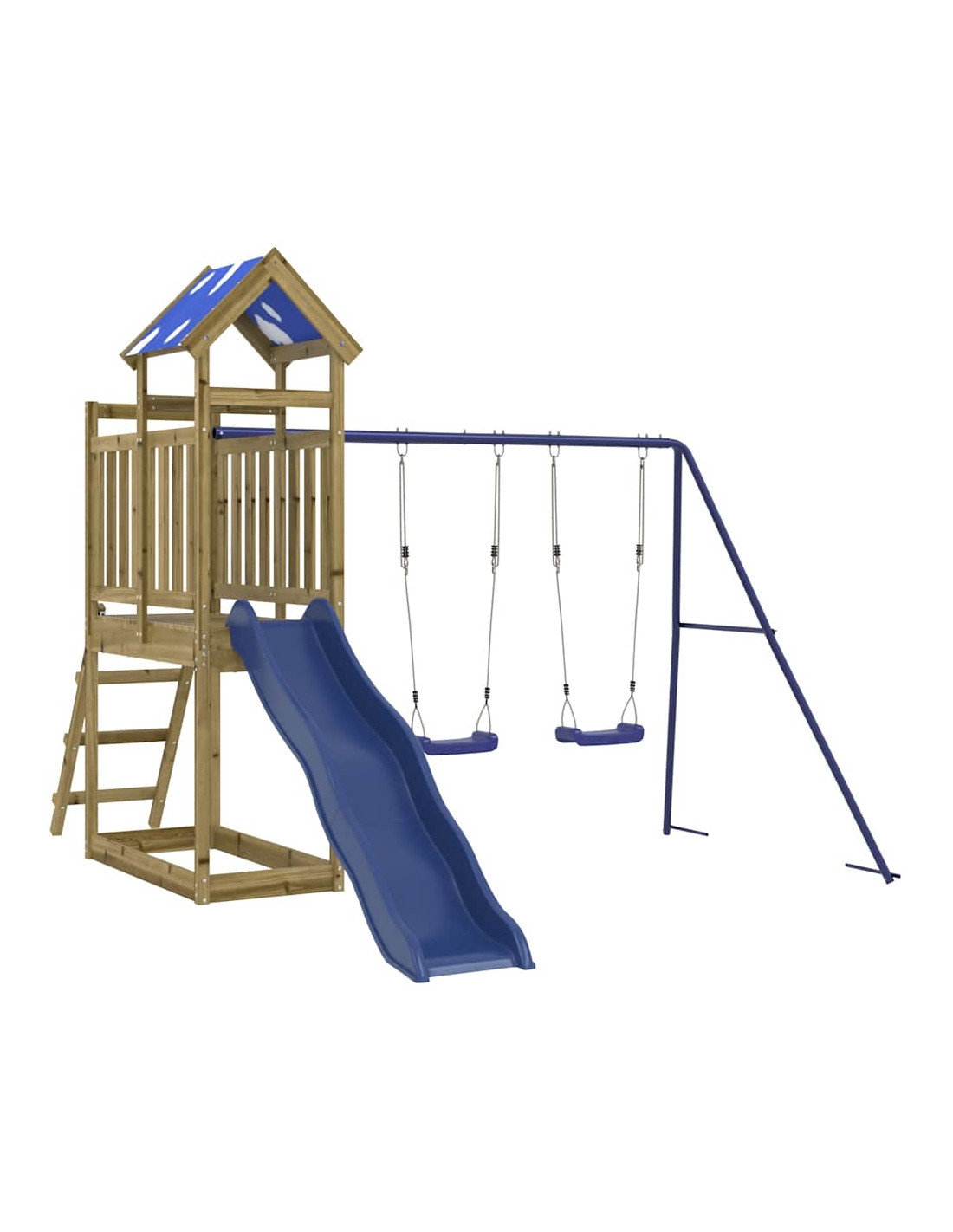 - Centri multiattività: Il parco giochi è dotato di una piattaforma di 90 cm di altezza e si distingue per lo scivolo ondulato, un set di 2 altalene, una scaletta una parete da arrampicata e una sabbiera. I vostri piccoli possono anche invitare i loro amici a unirsi al divertimento.