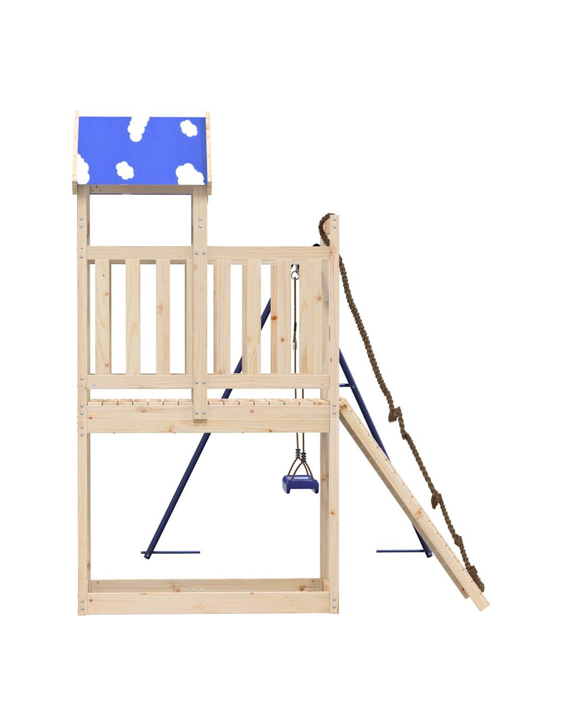 - Materiale durevole: Questo parco giochi da giardino è realizzato in legno massello di pino. Il legno massello di pino è noto per la sua resistenza e durata. Le sue venature dritte e i suoi nodi caratteristici contribuiscono al suo fascino rustico.
