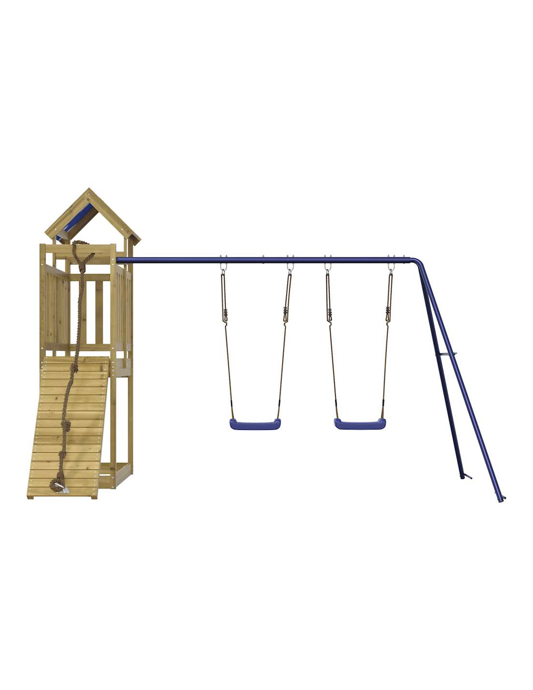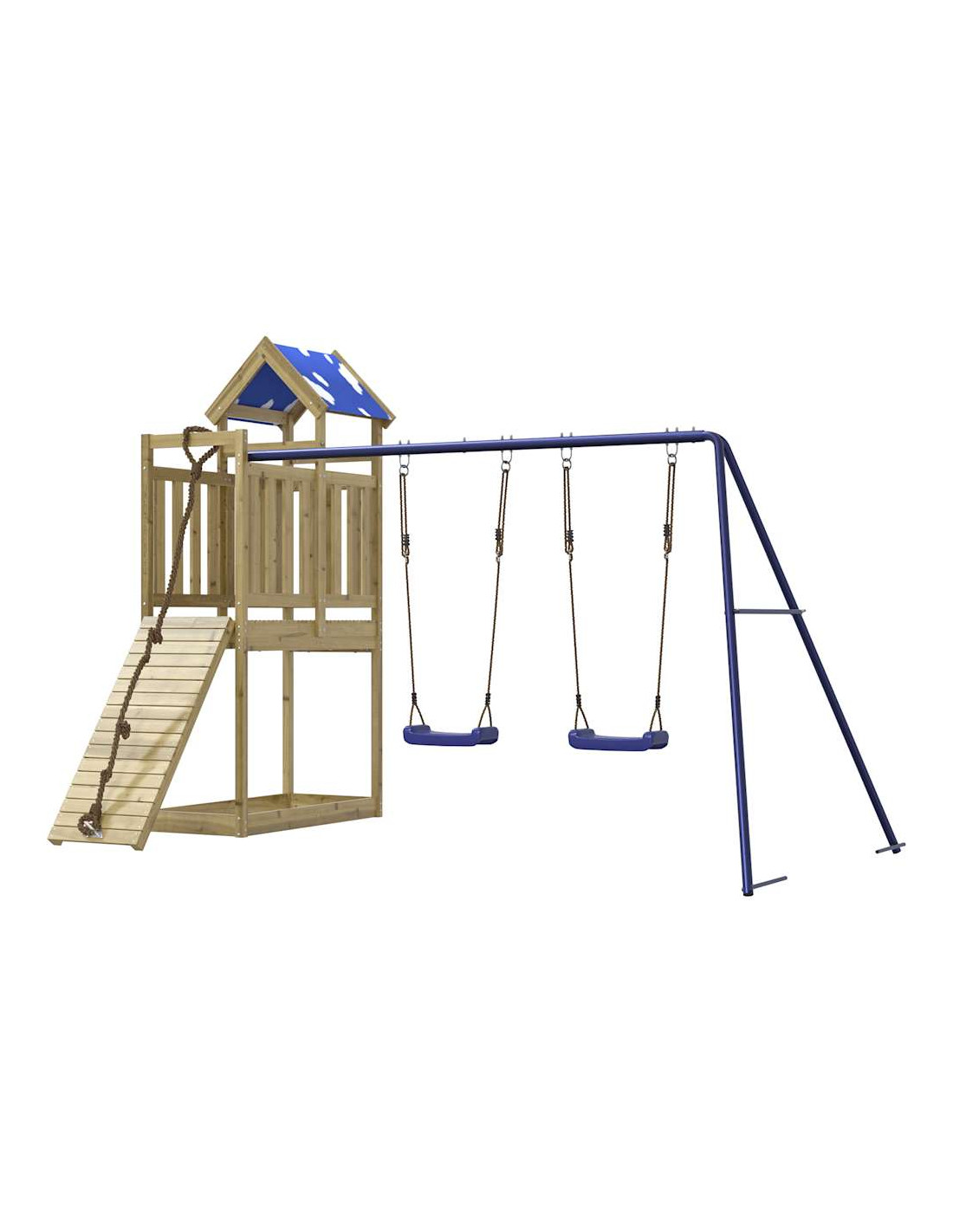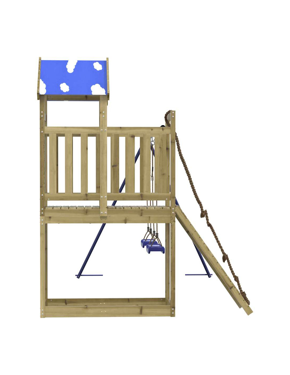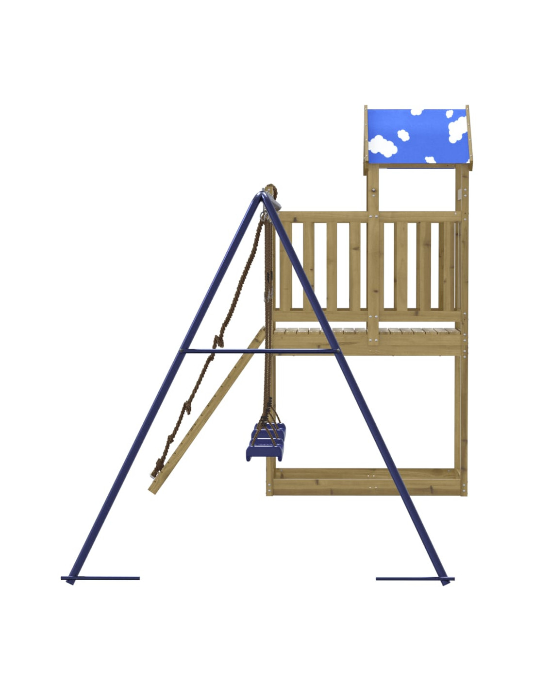 - Centri multiattività: Il parco giochi è dotato di una piattaforma alta 90 cm e si distingue per la sua parete da arrampicata con corda, doppia altalena e sabbiera. I vostri piccoli possono anche invitare i loro amici a unirsi al divertimento.