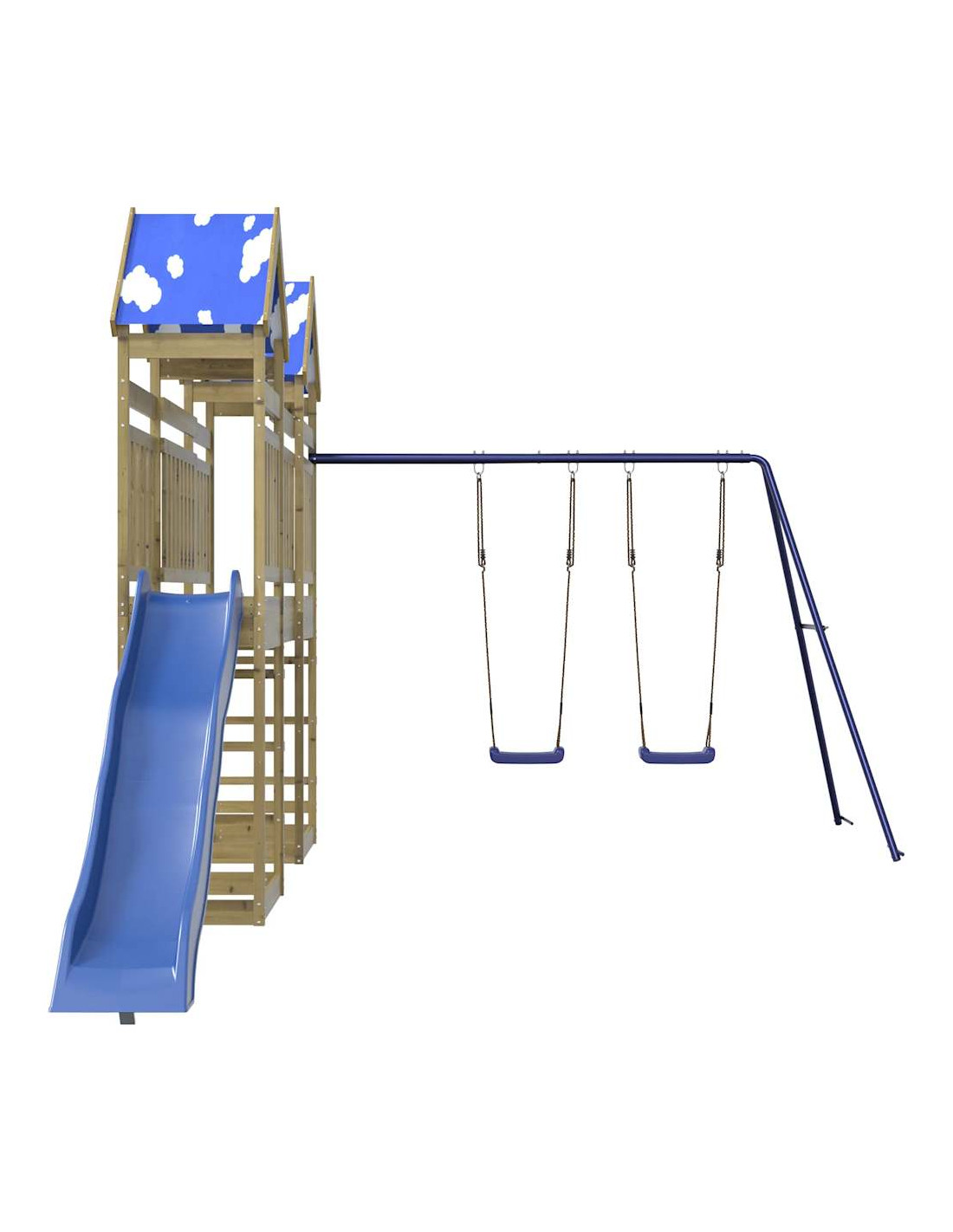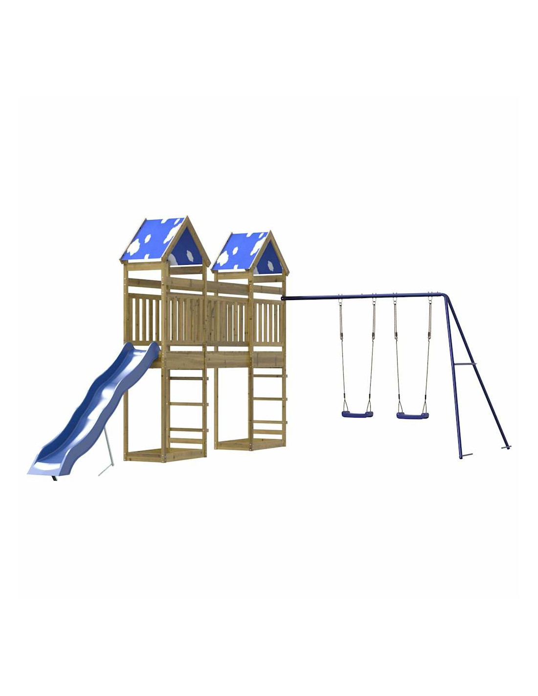 - Centri multiattività: Il parco giochi è dotato di una piattaforma di 118 cm di altezza e si distingue per lo scivolo ondulato, il set di altalene doppie e sabbiere. I vostri piccoli possono anche invitare i loro amici a unirsi al divertimento.