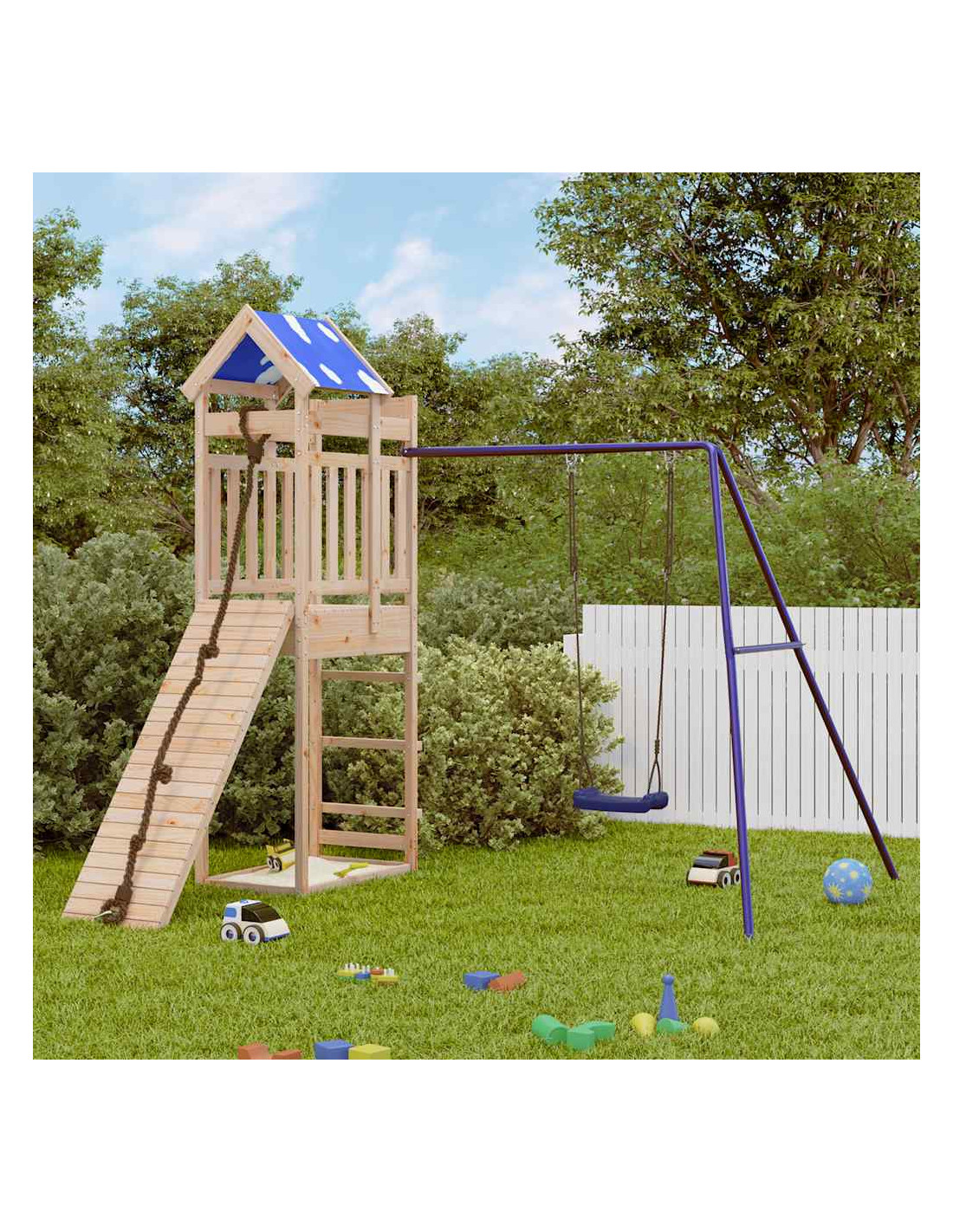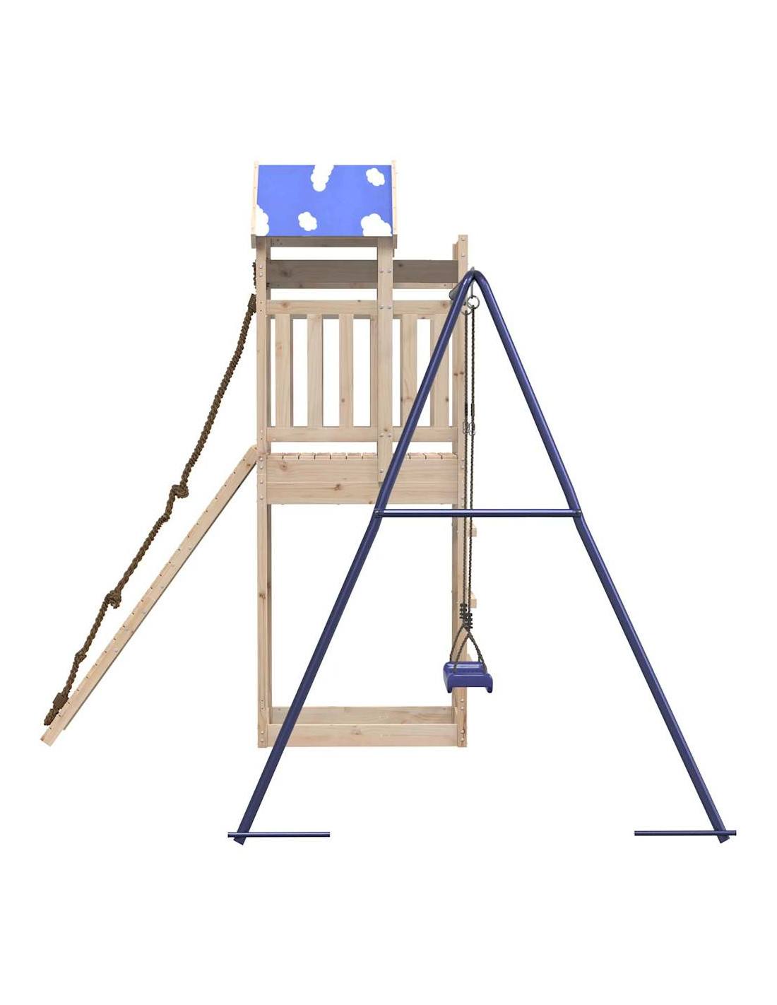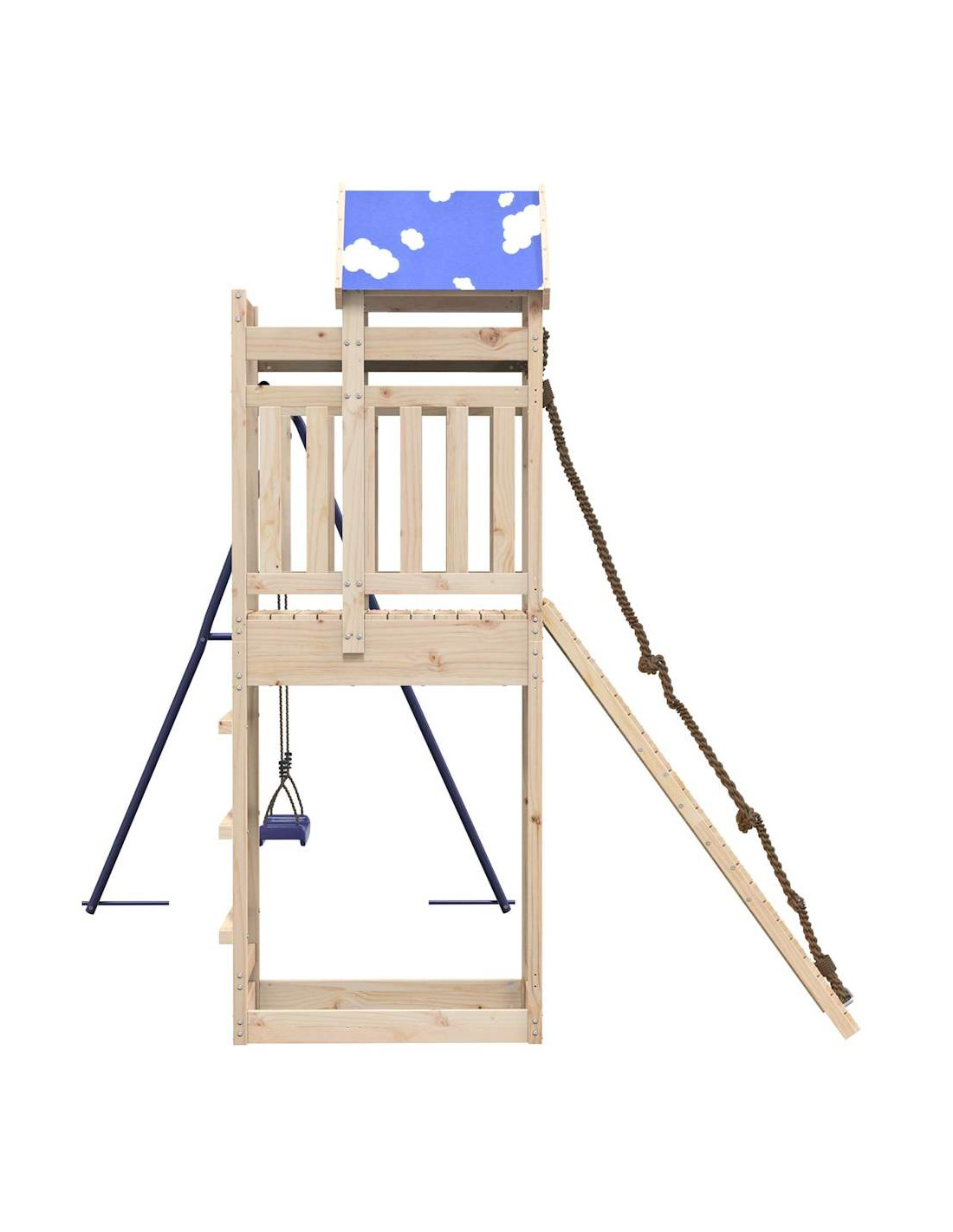 - Materiale durevole: Questo parco giochi da giardino è realizzato in legno massello di pino. Il legno massello di pino è noto per la sua resistenza e durata. Le sue venature dritte e i suoi nodi caratteristici contribuiscono al suo fascino rustico.