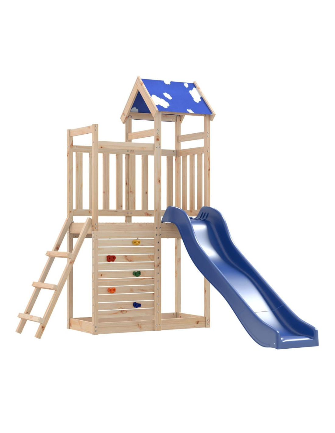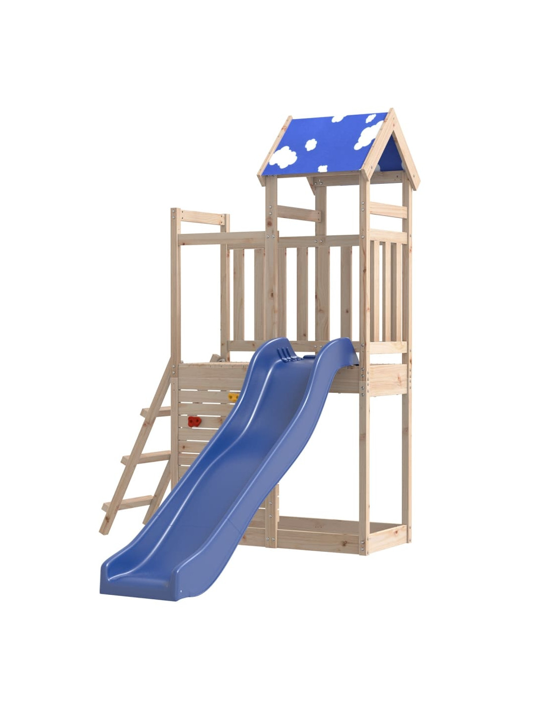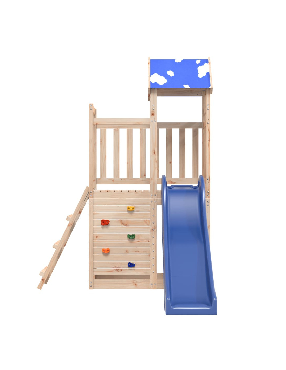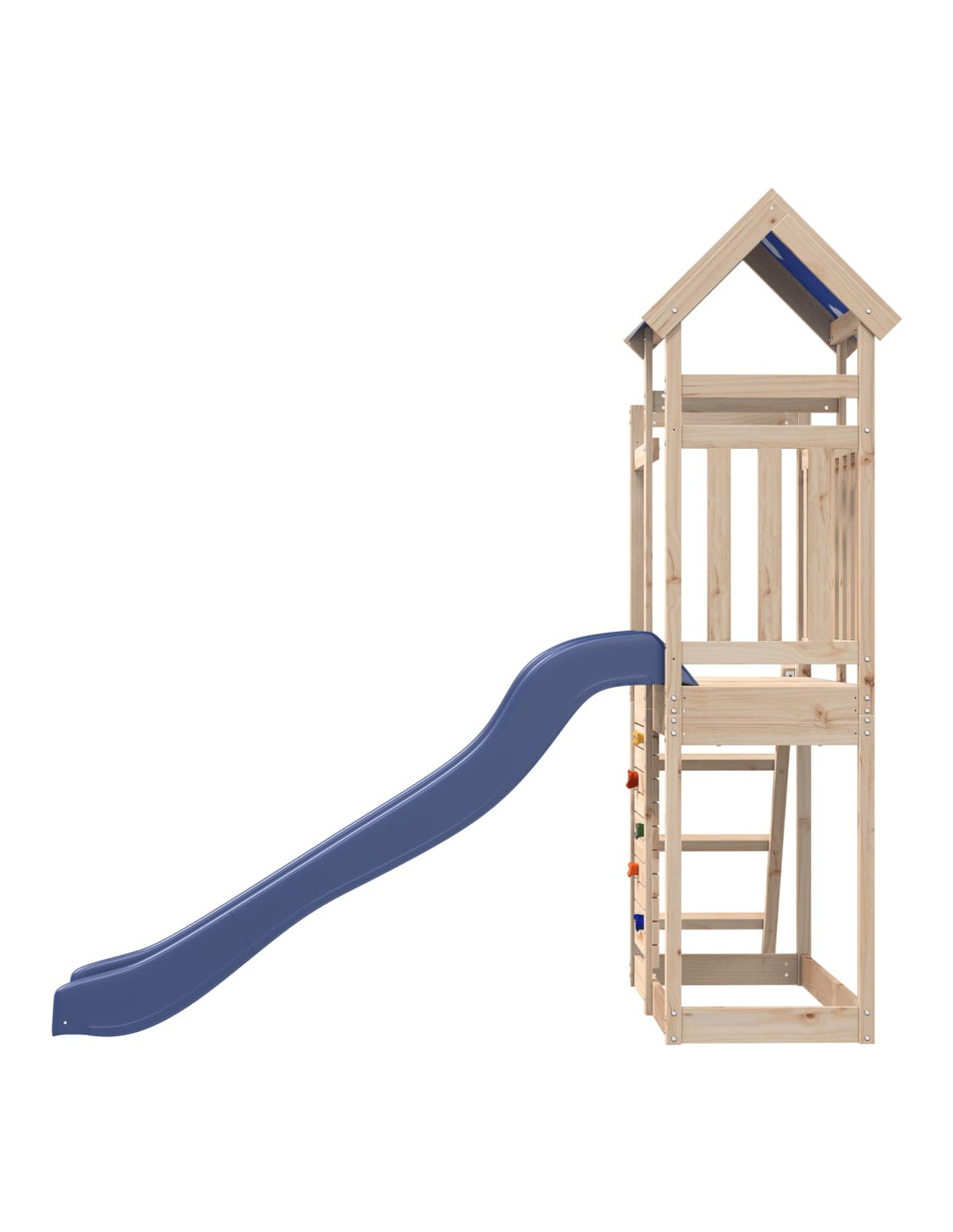 - Materiale resistente: Questo parco giochi è realizzato in legno massello di pino. Il legno massello di pino è noto per la sua resistenza e durata. Le sue venature dritte e i suoi nodi caratteristici contribuiscono al suo fascino rustico.