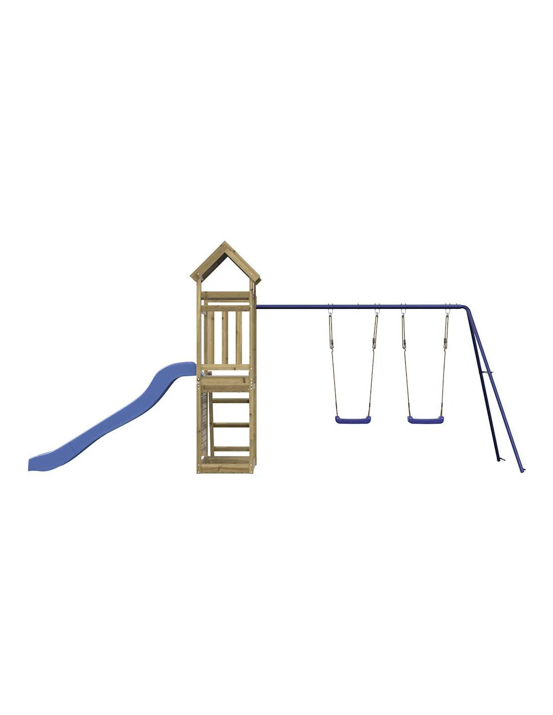 - Centri multiattività: Il parco giochi è dotato di una piattaforma di 90 cm di altezza e si distingue per lo scivolo ondulato, un set di 2 altalene, una scaletta una parete da arrampicata e una sabbiera. I vostri piccoli possono anche invitare i loro amici a unirsi al divertimento.