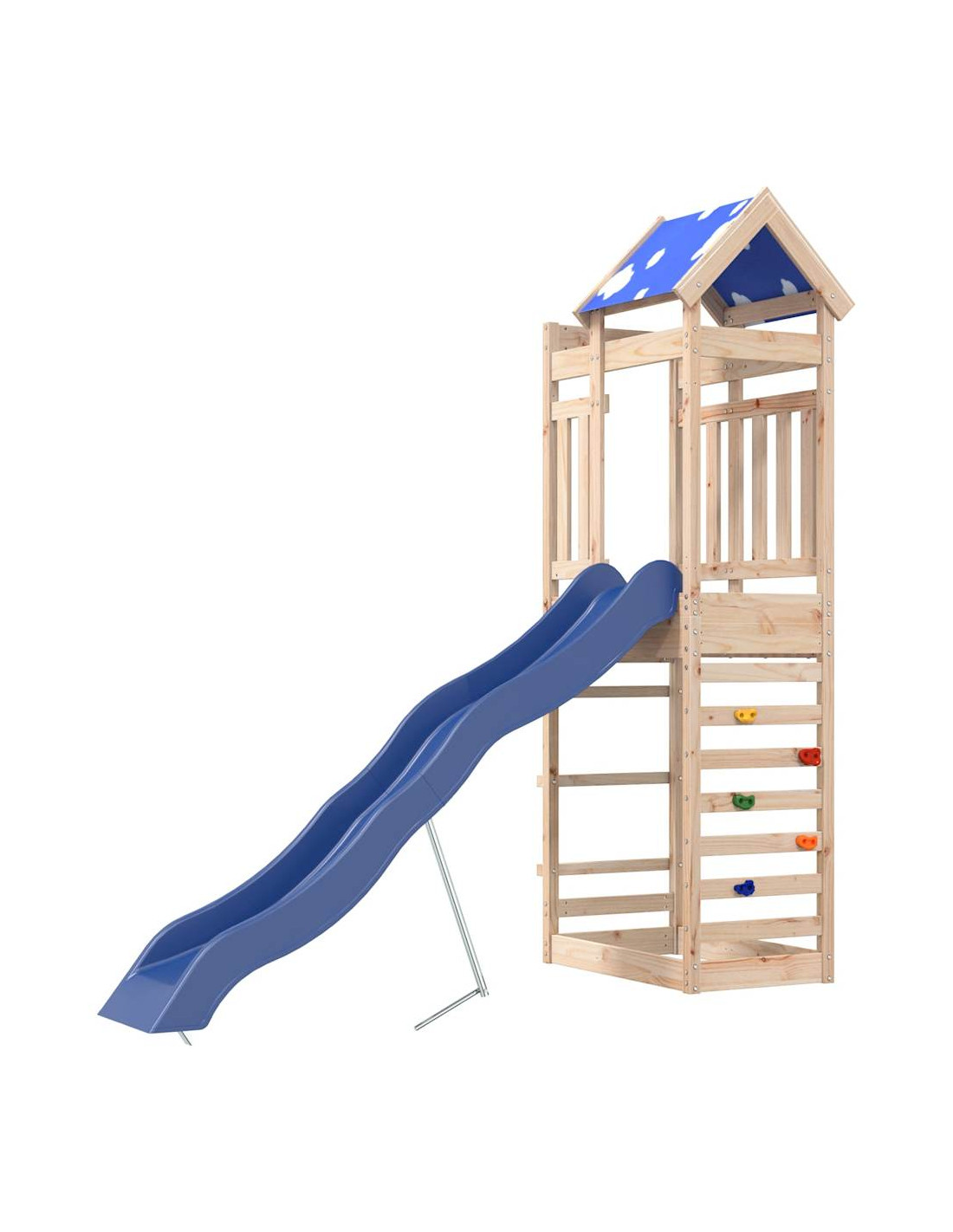- Materiale resistente: Questo parco giochi è realizzato in legno massello di pino. Il legno massello di pino è noto per la sua resistenza e durata. Le sue venature dritte e i suoi nodi caratteristici contribuiscono al suo fascino rustico.