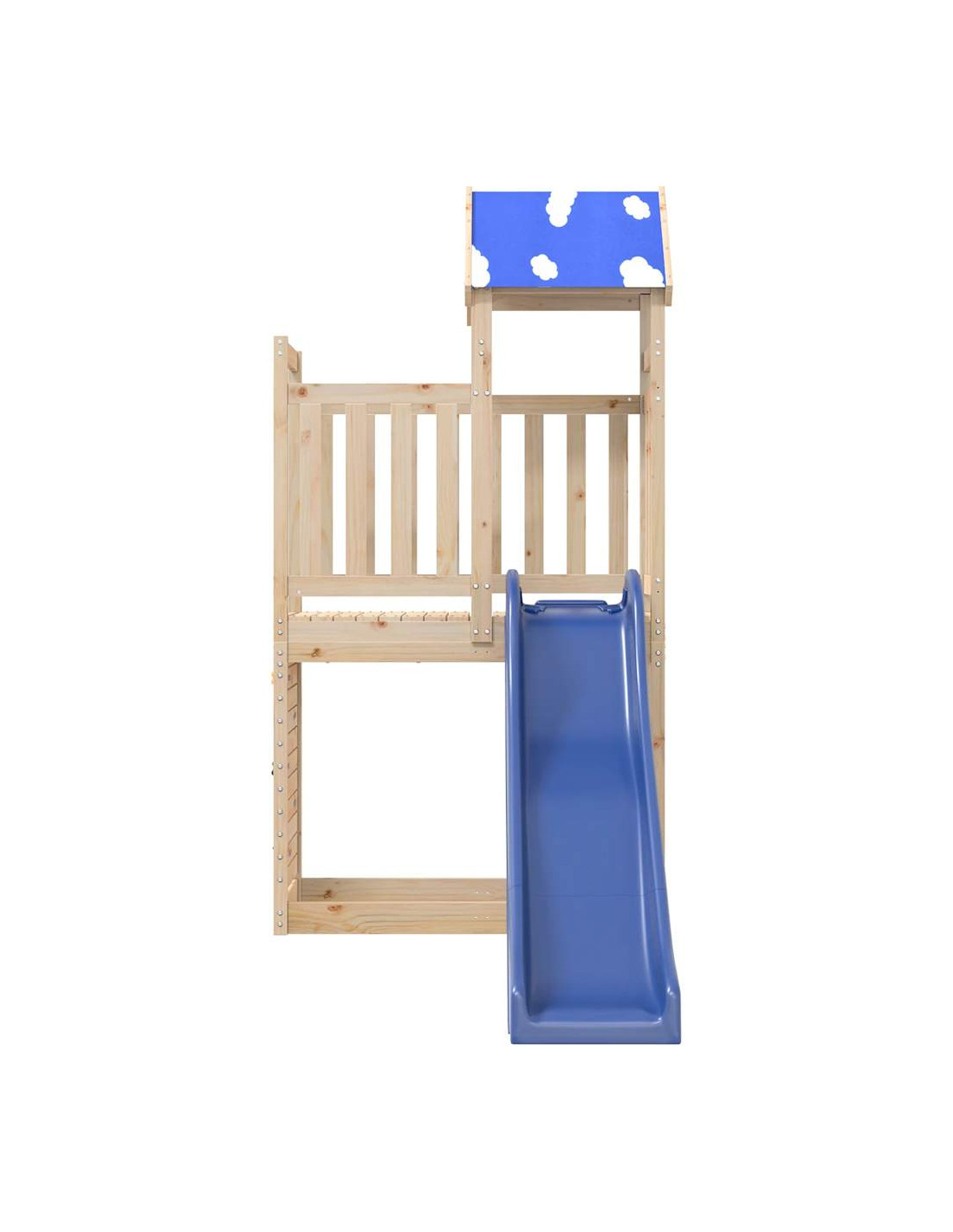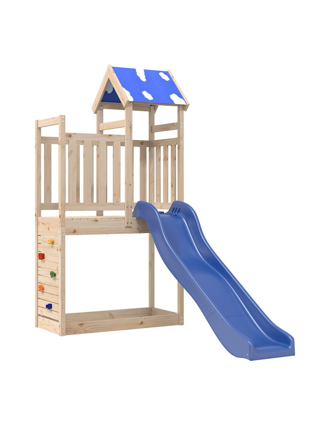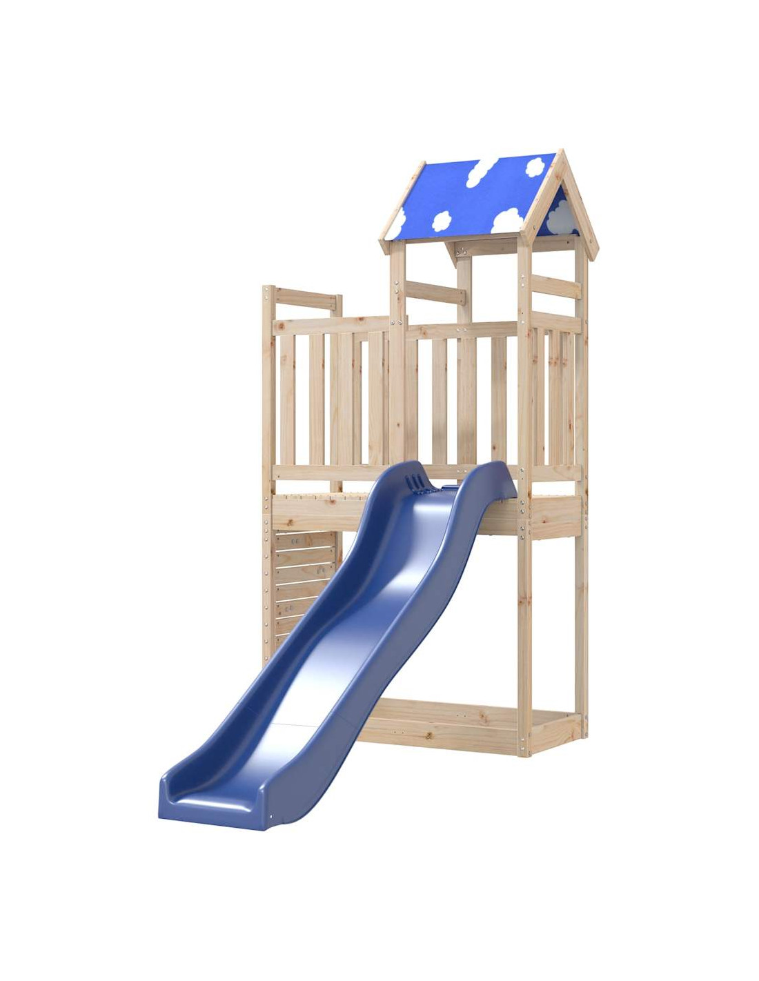 - Materiale resistente: Questo parco giochi è realizzato in legno massello di pino. Il legno massello di pino è noto per la sua resistenza e durata. Le sue venature dritte e i suoi nodi caratteristici contribuiscono al suo fascino rustico.