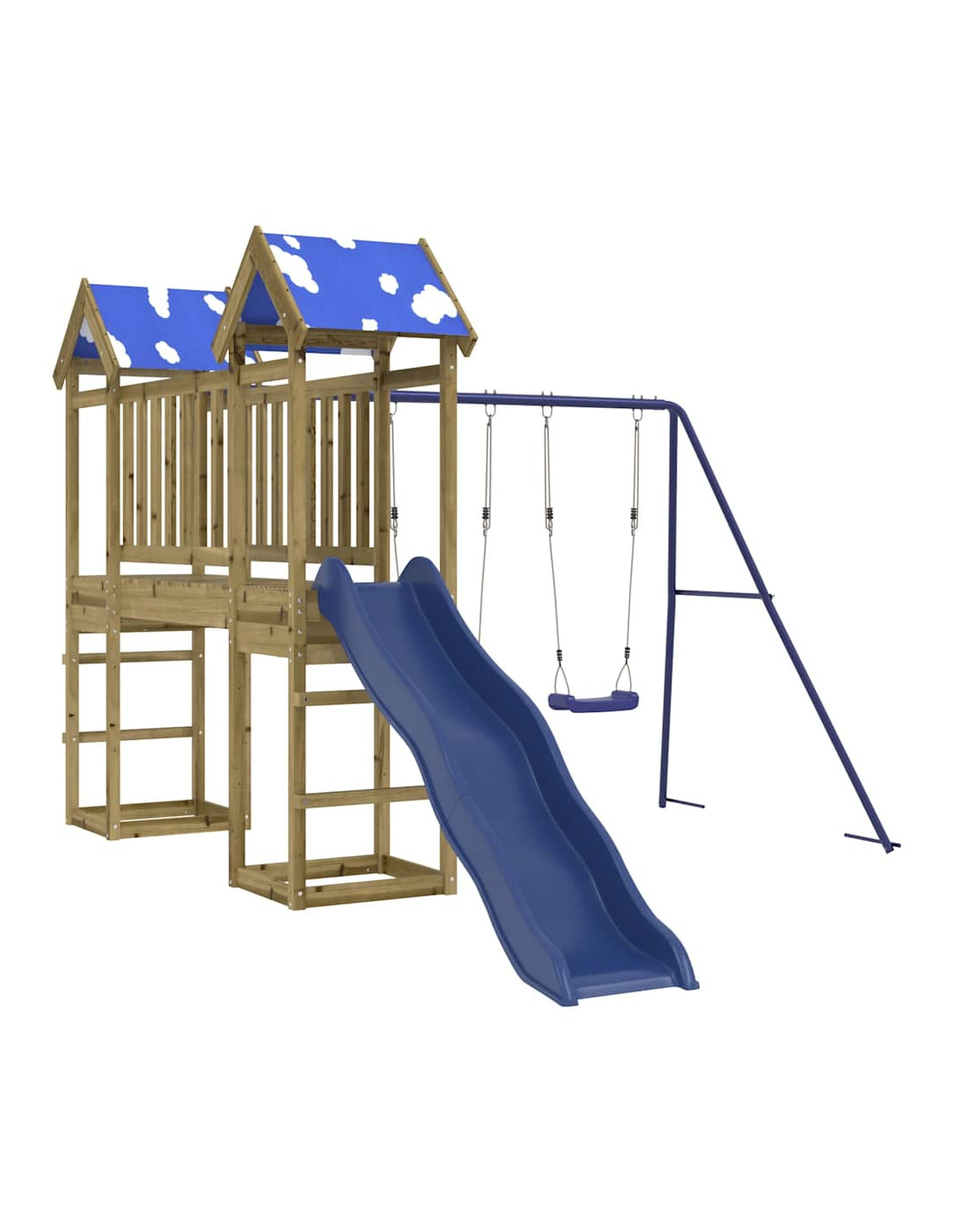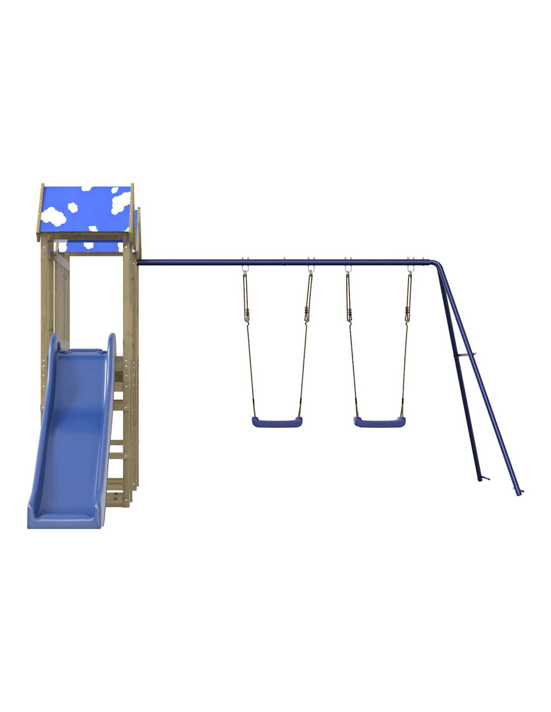 - Centri multiattività: Il parco giochi è dotato di una piattaforma di 90 cm di altezza e si distingue per lo scivolo ondulato, il set di 2 altalene e sabbiere. I vostri piccoli possono anche invitare i loro amici a unirsi al divertimento.
