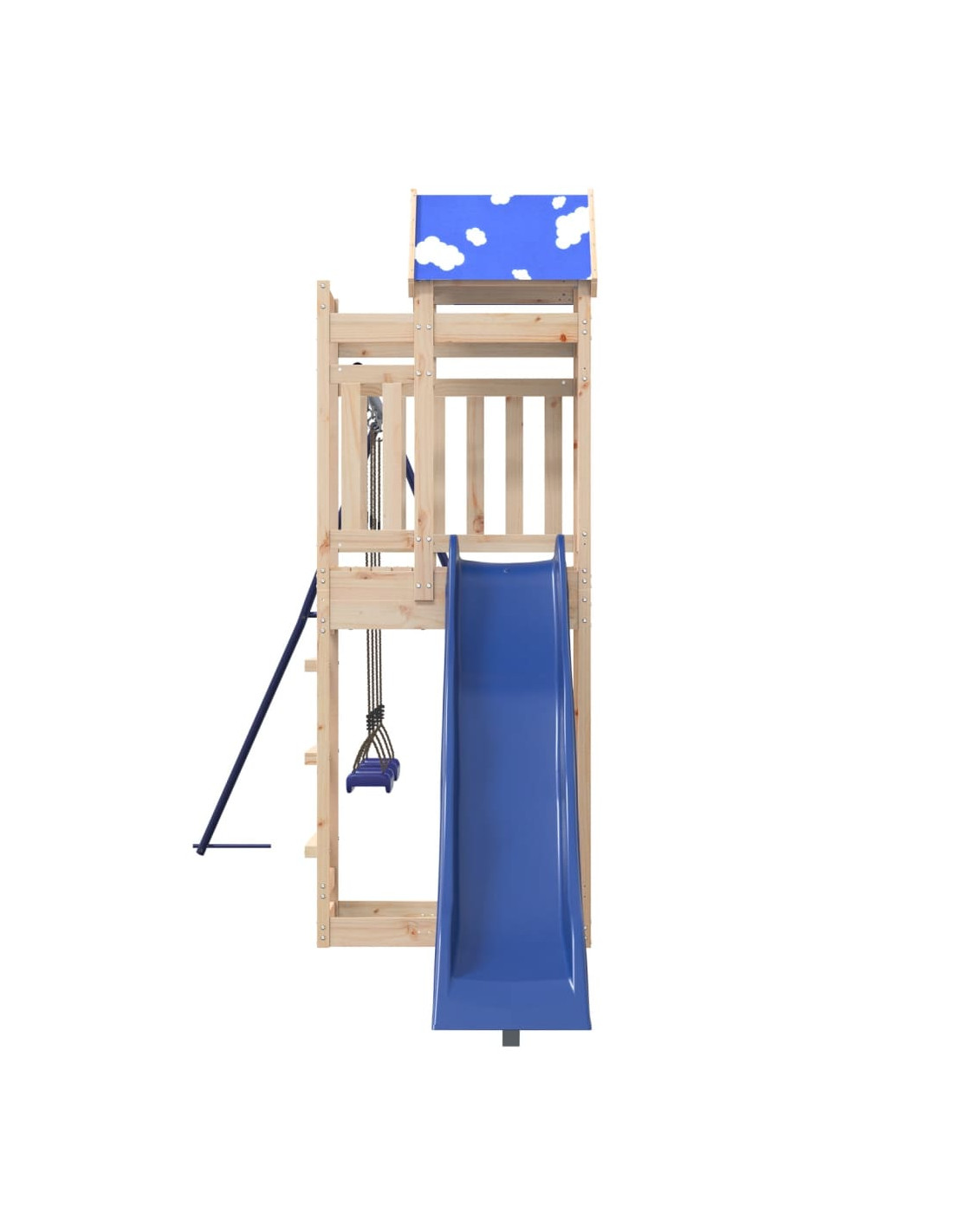 - Materiale durevole: Questo parco giochi da giardino è realizzato in legno massello di pino. Il legno massello di pino è noto per la sua resistenza e durata. Le sue venature dritte e i suoi nodi caratteristici contribuiscono al suo fascino rustico.