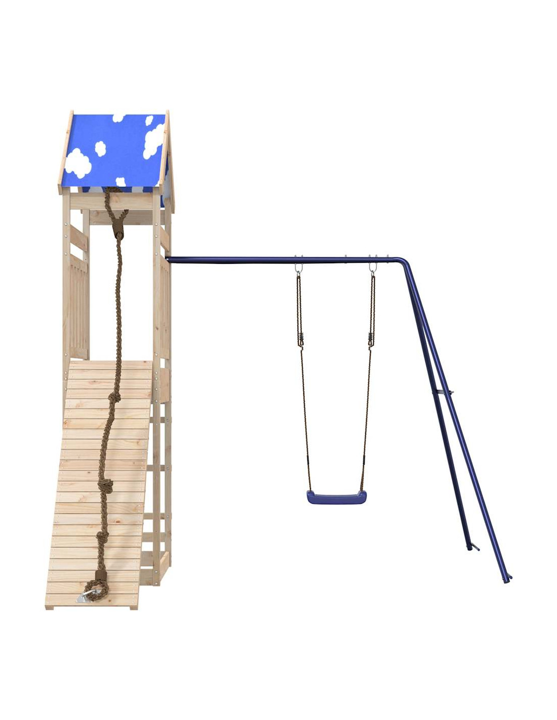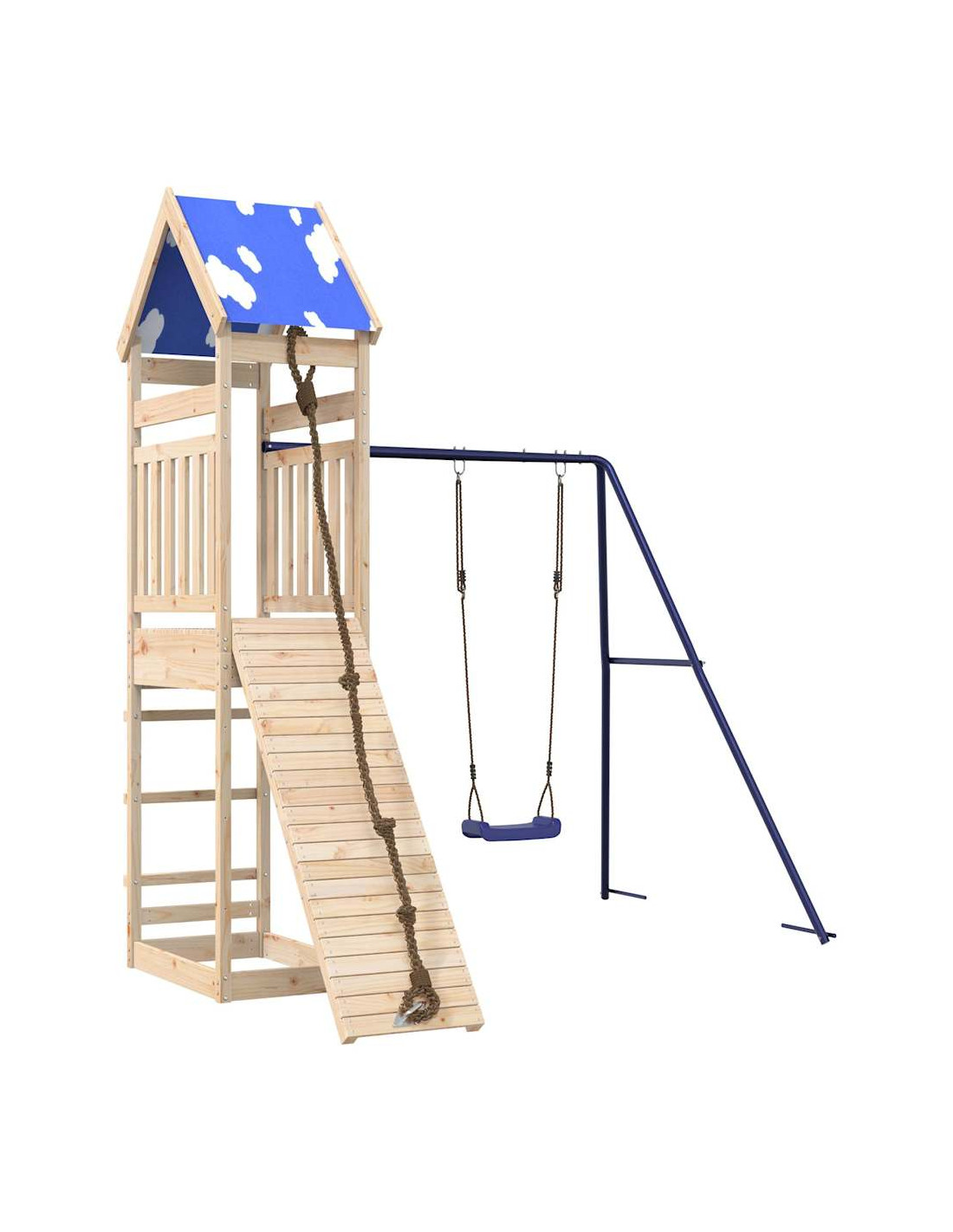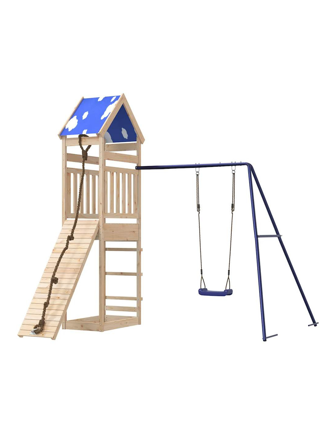 - Materiale durevole: Questo parco giochi da giardino è realizzato in legno massello di pino. Il legno massello di pino è noto per la sua resistenza e durata. Le sue venature dritte e i suoi nodi caratteristici contribuiscono al suo fascino rustico.