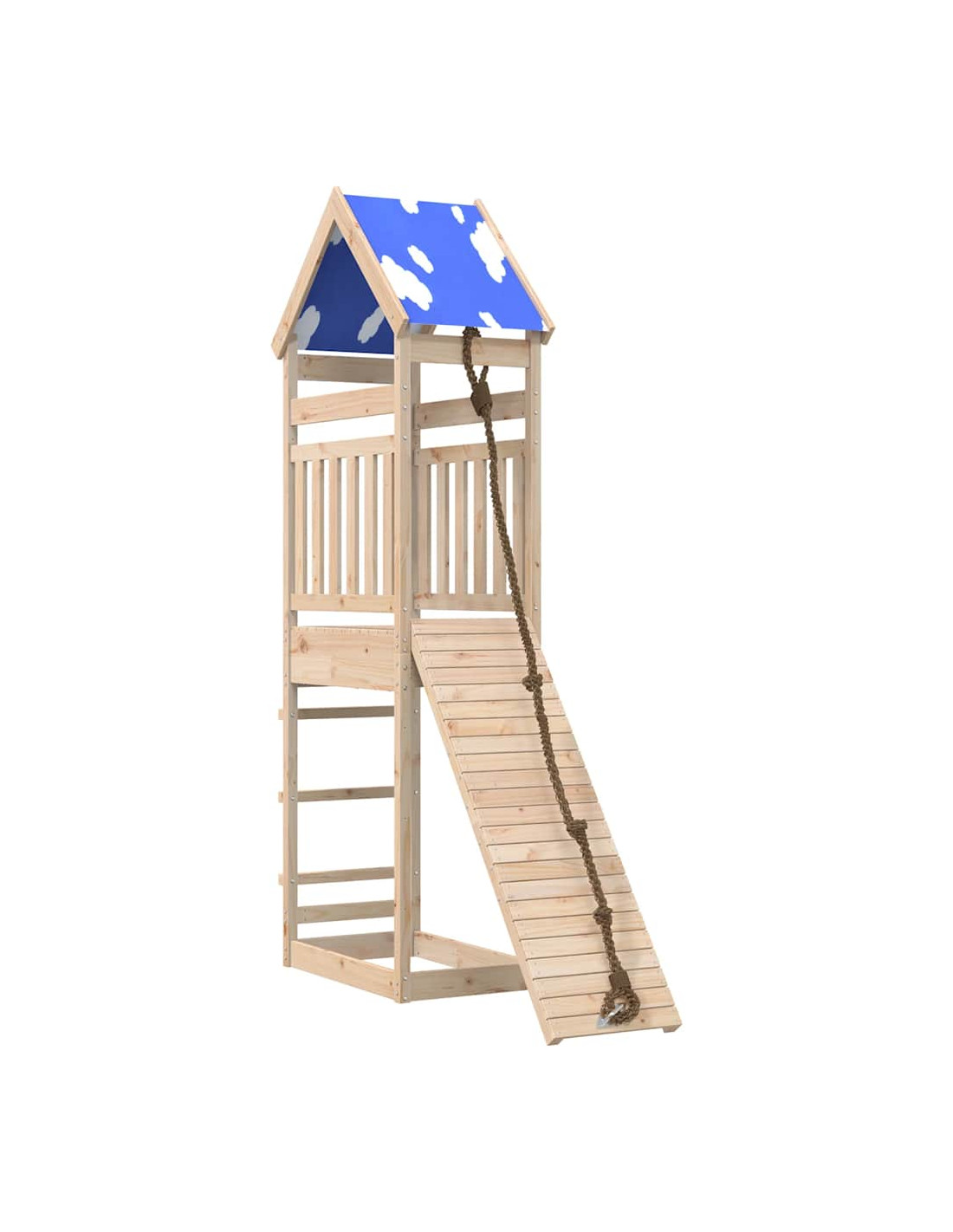 - Materiale resistente: Questo parco giochi è realizzato in legno massello di pino. Il legno massello di pino è noto per la sua resistenza e durata. Le sue venature dritte e i suoi nodi caratteristici contribuiscono al suo fascino rustico.