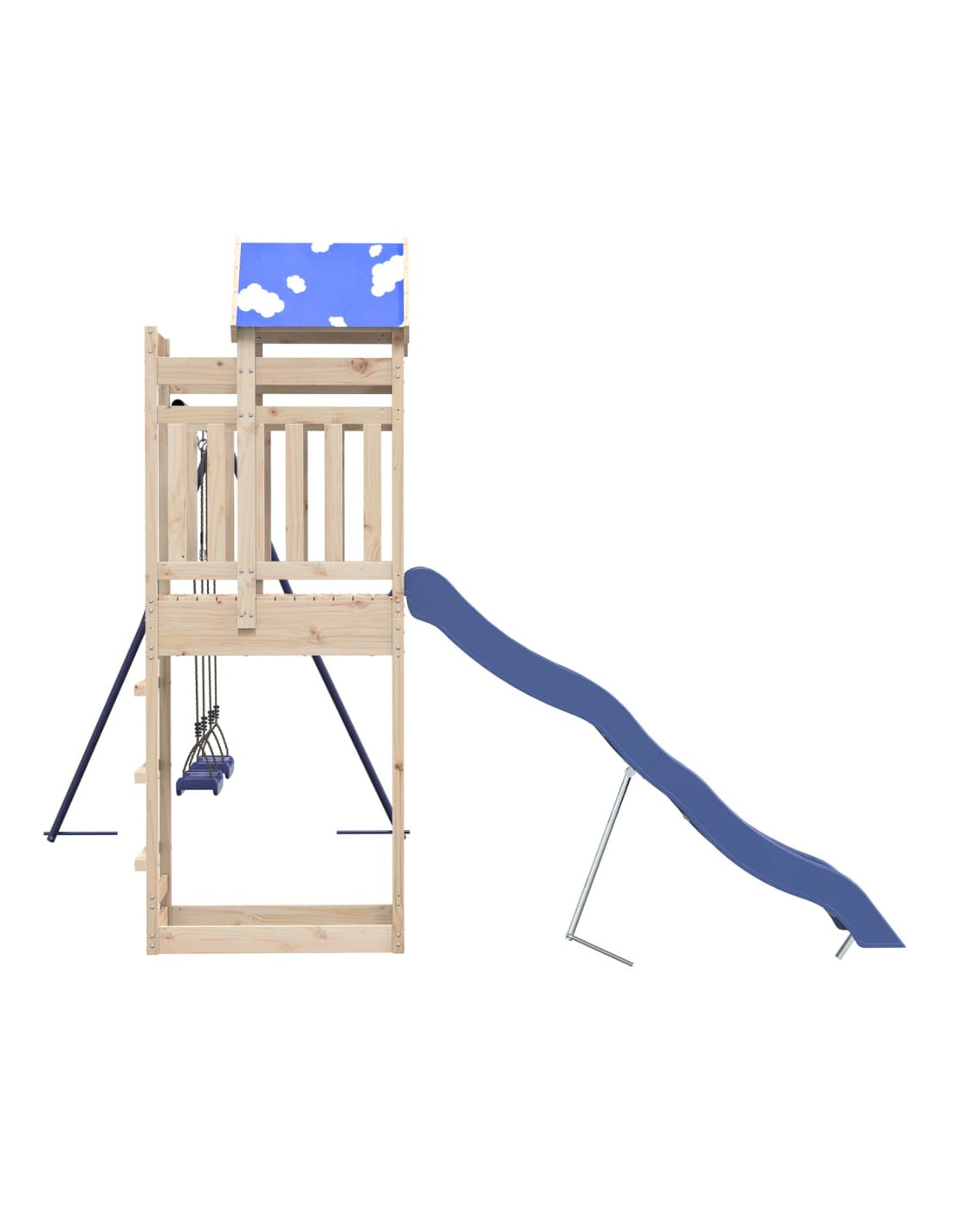 - Materiale durevole: Questo parco giochi da giardino è realizzato in legno massello di pino. Il legno massello di pino è noto per la sua resistenza e durata. Le sue venature dritte e i suoi nodi caratteristici contribuiscono al suo fascino rustico.
