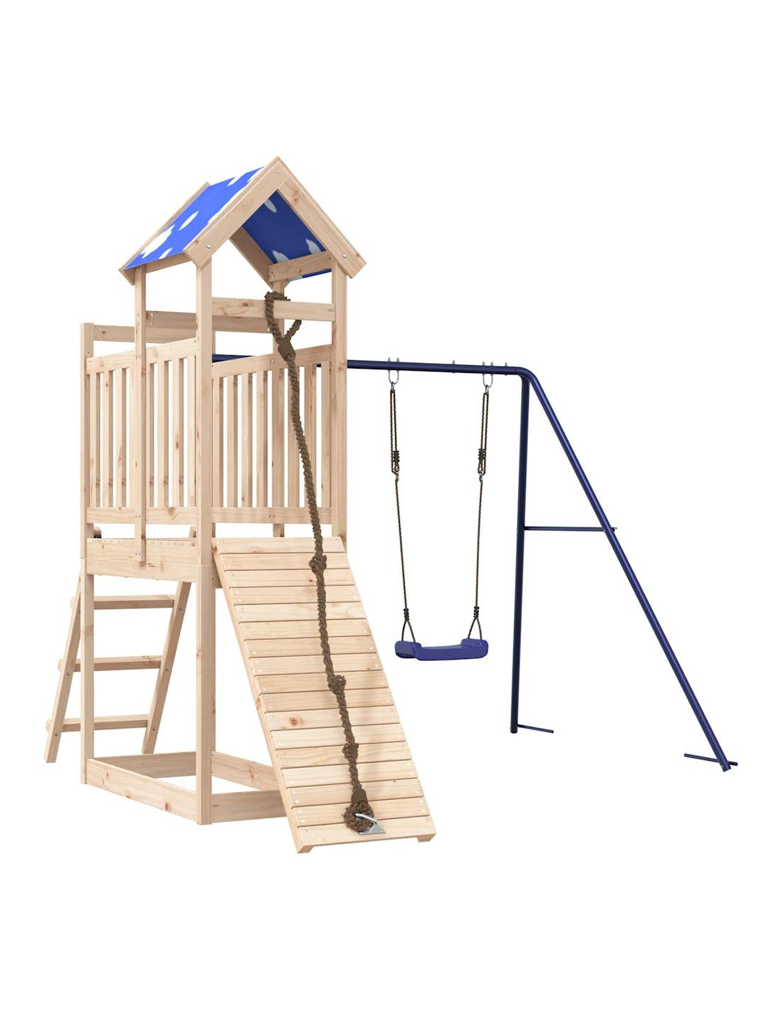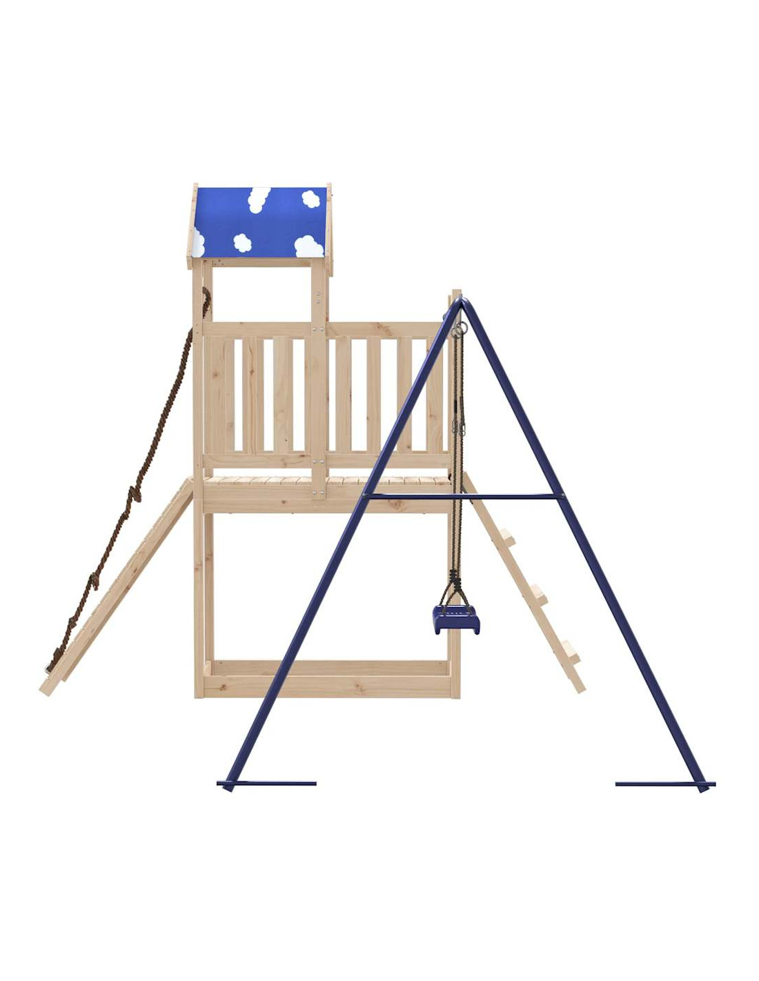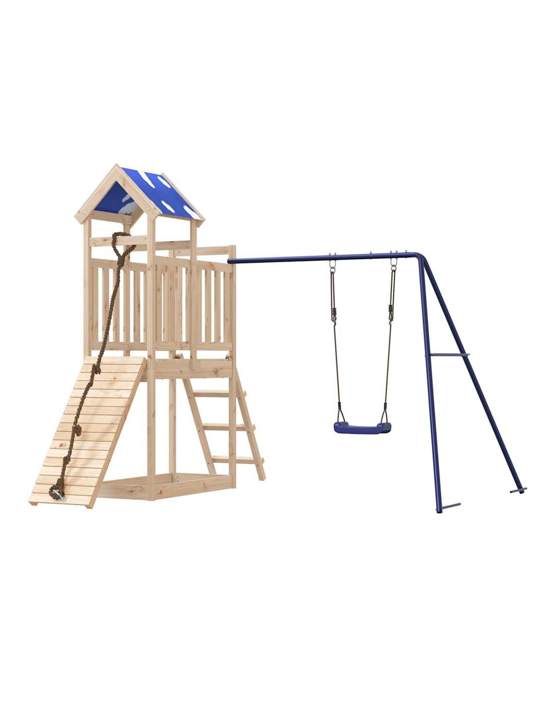 - Materiale durevole: Questo parco giochi da giardino è realizzato in legno massello di pino. Il legno massello di pino è noto per la sua resistenza e durata. Le sue venature dritte e i suoi nodi caratteristici contribuiscono al suo fascino rustico.