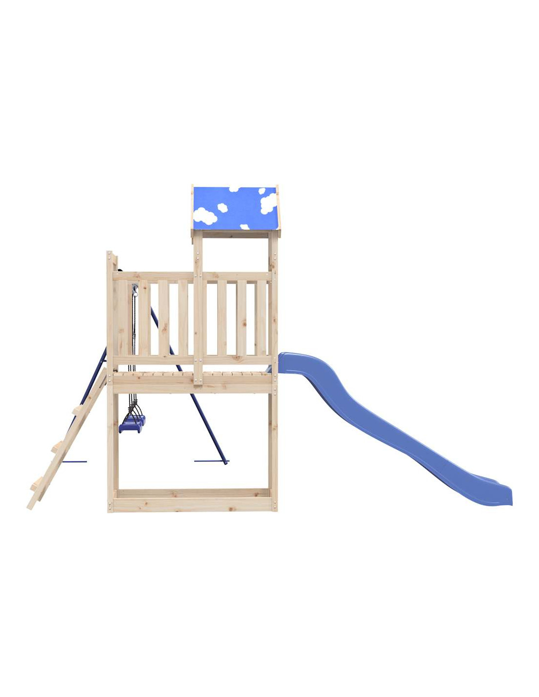 - Materiale durevole: Questo parco giochi da giardino è realizzato in legno massello di pino. Il legno massello di pino è noto per la sua resistenza e durata. Le sue venature dritte e i suoi nodi caratteristici contribuiscono al suo fascino rustico.