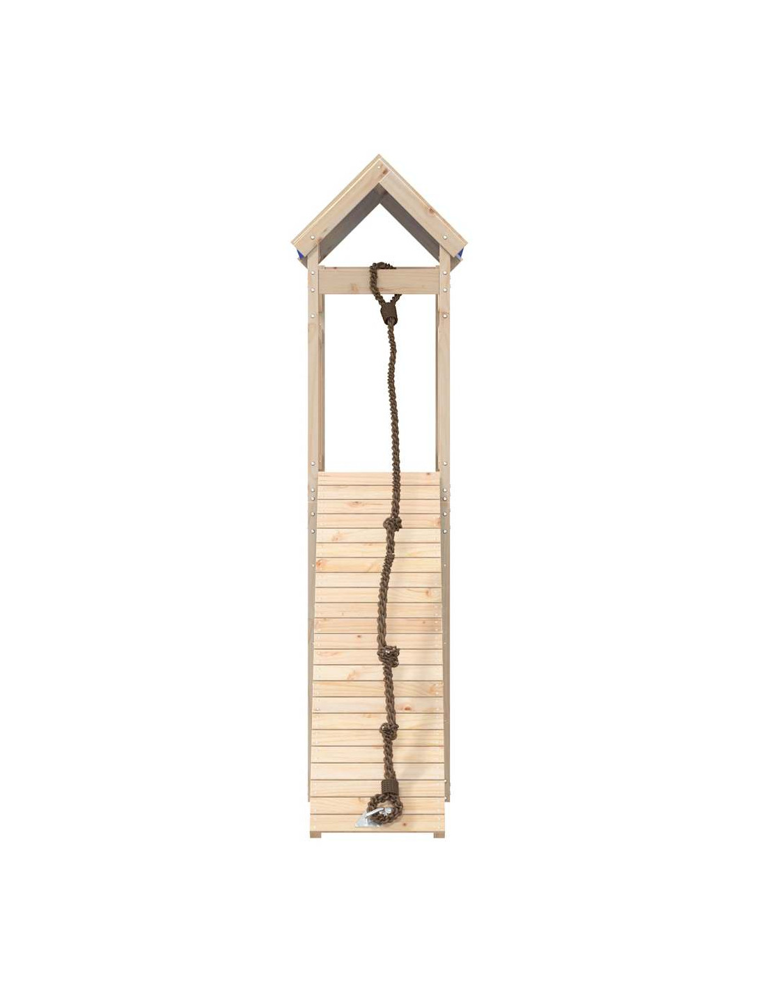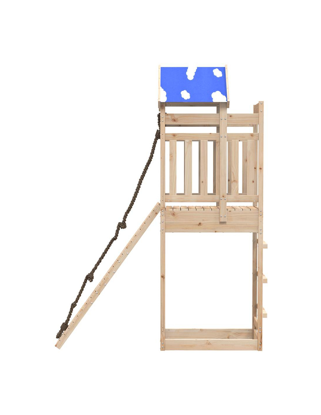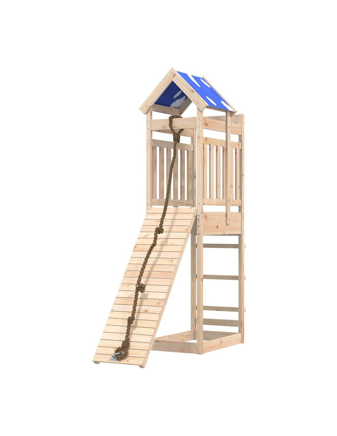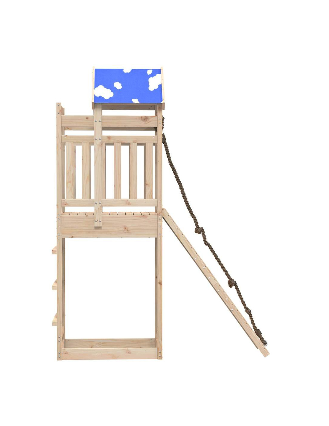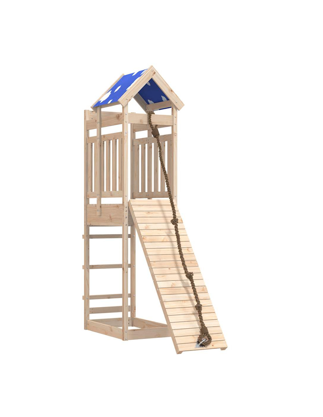- Materiale resistente: Questo parco giochi è realizzato in legno massello di pino. Il legno massello di pino è noto per la sua resistenza e durata. Le sue venature dritte e i suoi nodi caratteristici contribuiscono al suo fascino rustico.