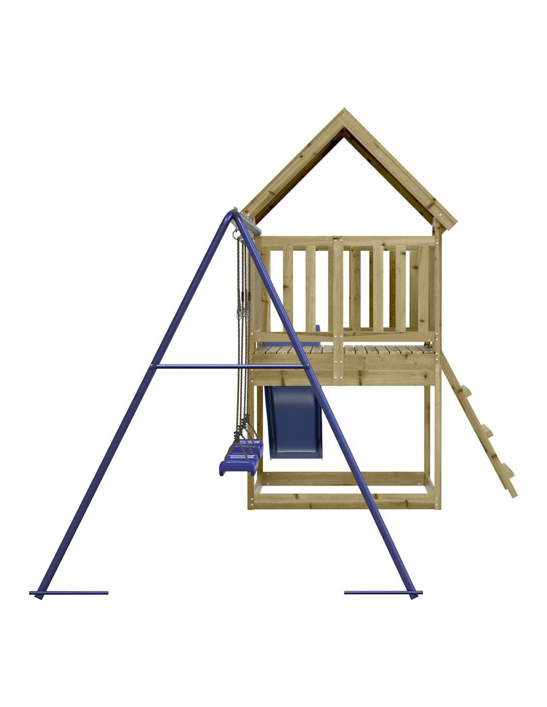 - Telaio robusto in legno: La struttura in legno della casetta da giardino garantisce robustezza e stabilità. Inoltre, le gambe a forma di "A" dell'altalena per bambini consentono l'equilibrio.