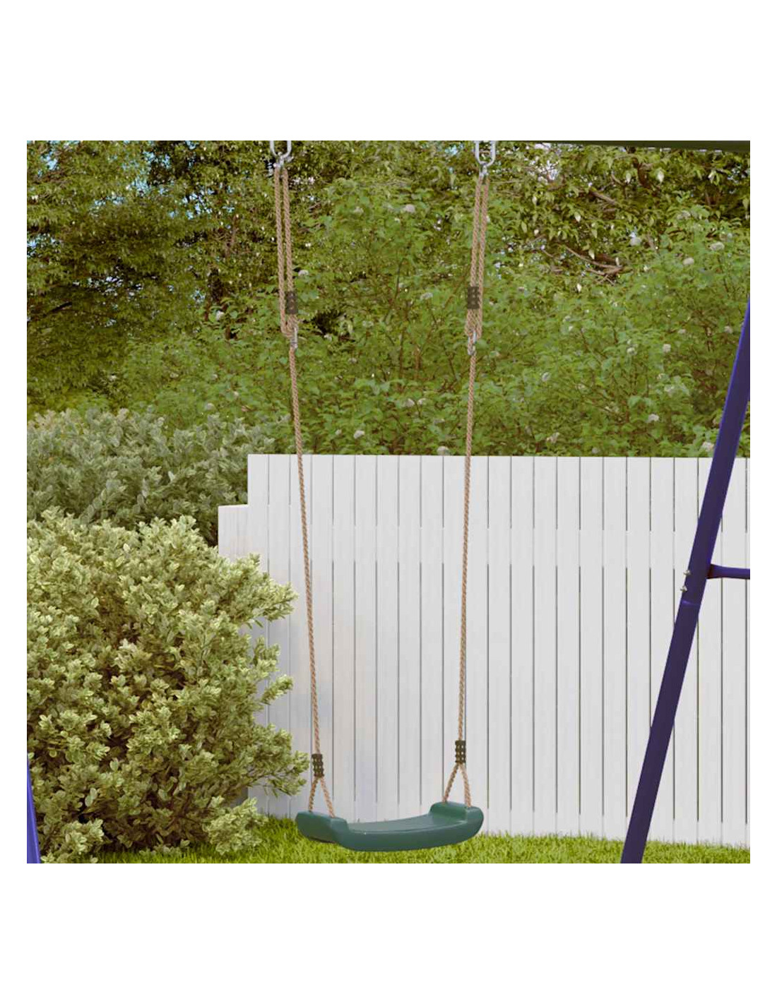 Questo seggiolino per altalena da esterno è un'aggiunta ideale a qualsiasi altalena o struttura per arrampicata. È un ottimo modo per i bambini di divertirsi e mantenersi attivi nel loro giardino. Adatto ai bambini e sicuro: il seggiolino per altalena dal design ergonomico è leggero e presenta una superficie antiscivolo per una presa ottimale. Grazie agli angoli e ai bordi arrotondati, il rischio di lesioni è ridotto al minimo anche durante il gioco attivo. Lunghezza della corda regolabile: questa altalena da giardino è progettata per crescere con il tuo bambino, rendendola adatta sia ai più piccoli che ai bambini in crescita. Regolando la lunghezza della corda, puoi facilmente adattarti alle mutevoli esigenze del tuo bambino. Installazione sicura e stabile: questa altalena da esterno è dotata di robusti anelli di montaggio in metallo sulla corda, che garantiscono un fissaggio sicuro e stabile a qualsiasi struttura per altalena o altri dispositivi idonei. Resistente alle intemperie e durevole: il sedile in plastica impermeabile, insieme alla corda e agli accessori di montaggio, garantiscono che l'altalena sia resistente alle intemperie e durevole, perfetta per l'uso all'aperto. Buono a sapersi: Per motivi di sicurezza, assicurarsi che l'altalena sia per un bambino alla volta. Il telaio dell'altalena è venduto separatamente. Puoi visitare il negozio per trovare il telaio abbinato per completare il tuo set altalena!