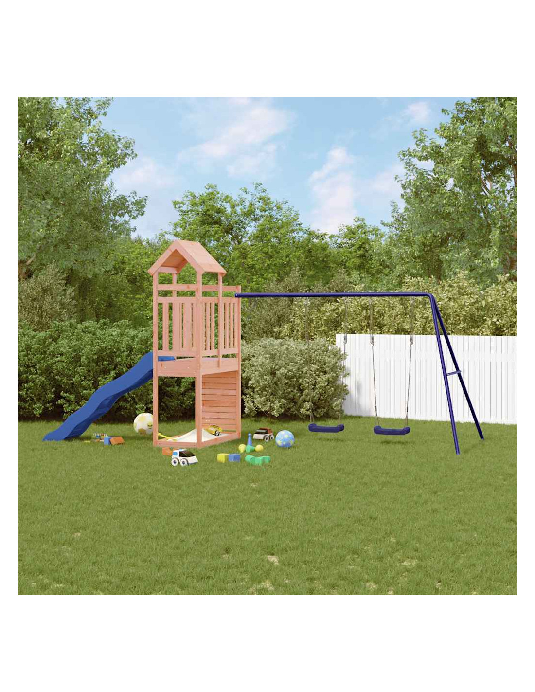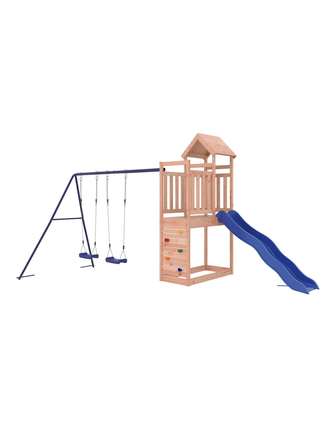 - Materiale resistente: questo parco giochi da giardino è realizzato in legno di douglas massello. Il legno massello di douglas è un legno molto resistente che funziona bene per l'esterno. Il legno di douglas è anche abbastanza resistente da necessitare la minima manutenzione, anche sotto l'influenza degli agenti atmosferici.