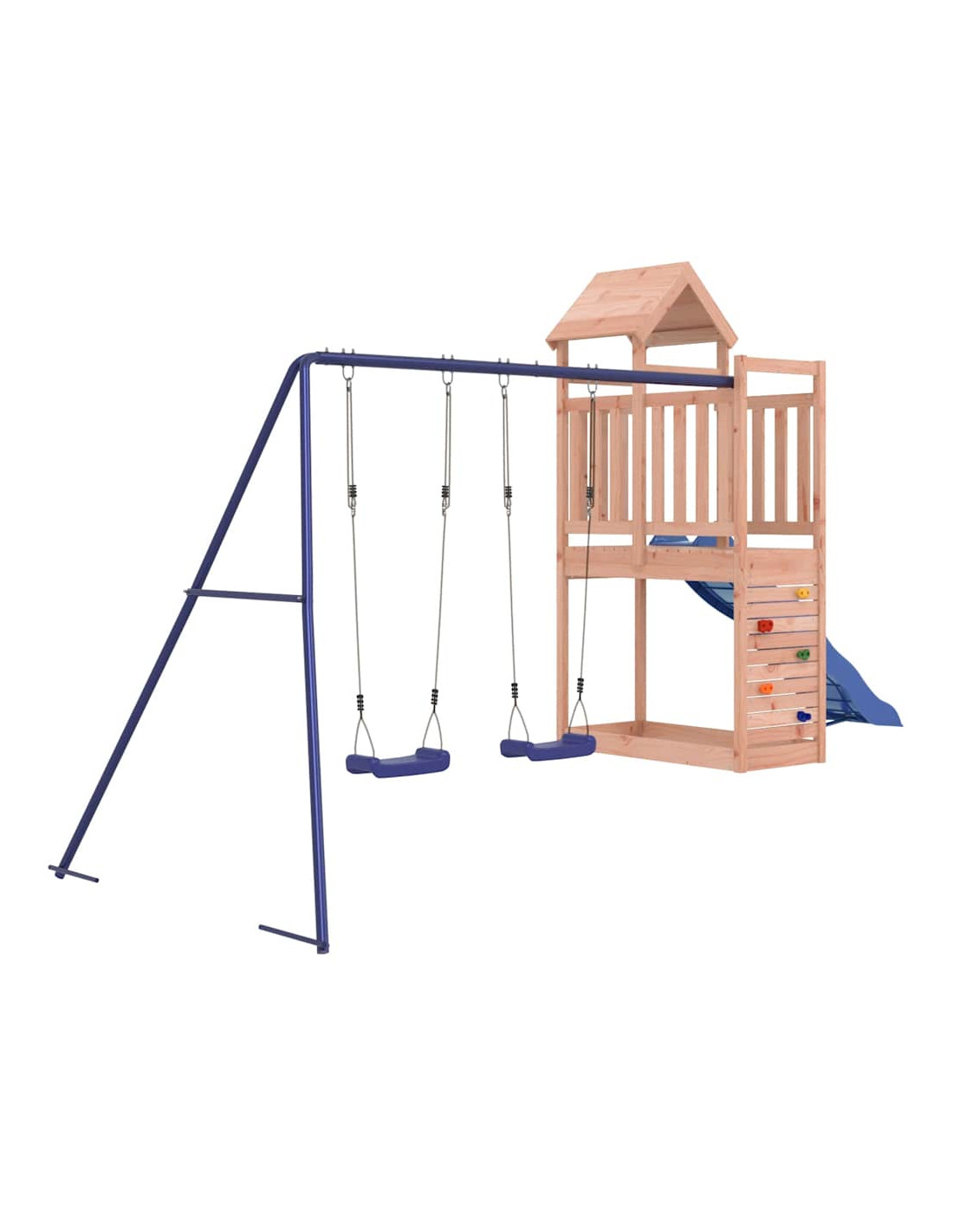 - Centri multiattività: Il parco giochi è dotato di una piattaforma di 90 cm di altezza e si distingue per la parete da arrampicata, lo scivolo ondulato, un set di 2 altalene e una sabbiera. I vostri piccoli possono anche invitare i loro amici a unirsi al divertimento.
