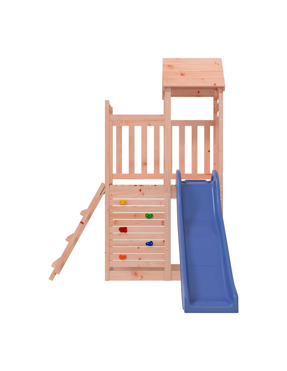 - Materiale resistente: questo parco giochi con scivolo è realizzato in legno massello di douglas. Il legno massello di douglas è un legno molto resistente che funziona bene per l'esterno. Il legno di douglas è anche abbastanza resistente da necessitare la minima manutenzione, anche sotto l'influenza degli agenti atmosferici.