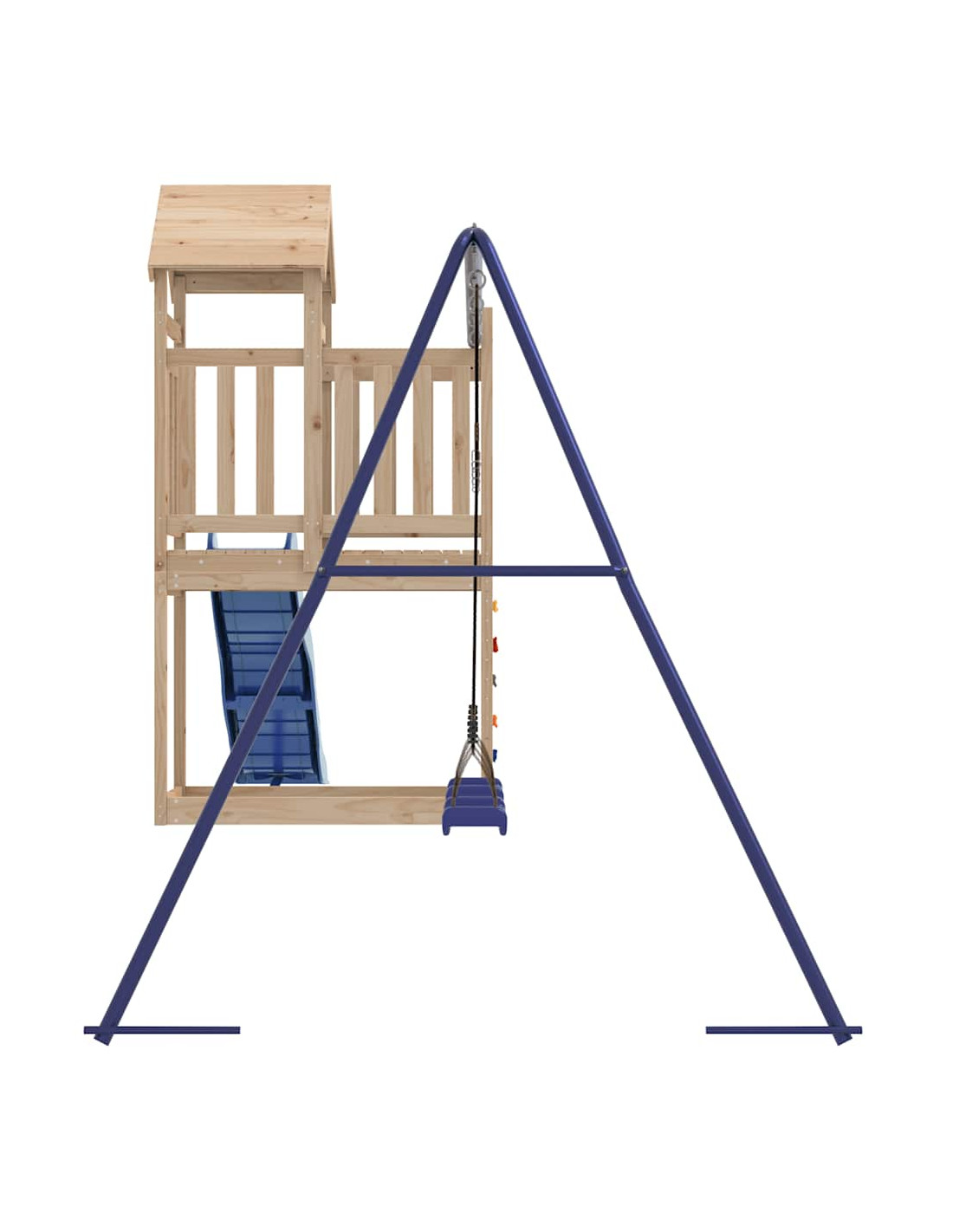 - Telaio robusto e stabile: Il telaio in legno del parco giochi con scivolo garantisce robustezza e stabilità. Inoltre, le gambe a forma di "A" dell'altalena per bambini consentono l'equilibrio.
