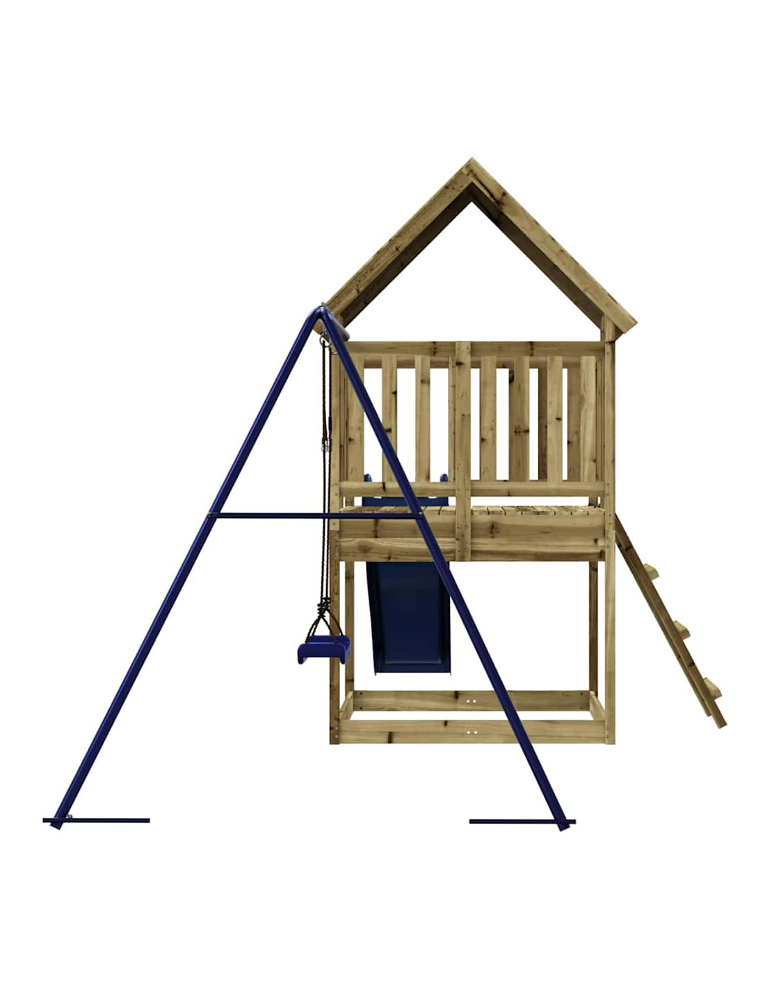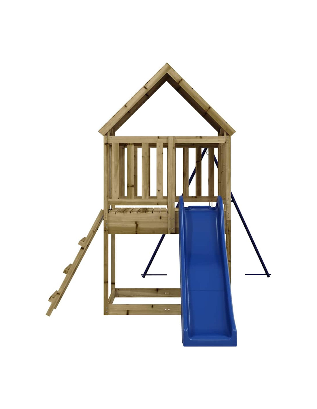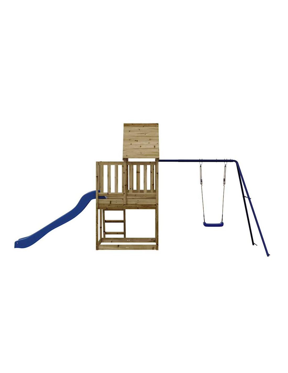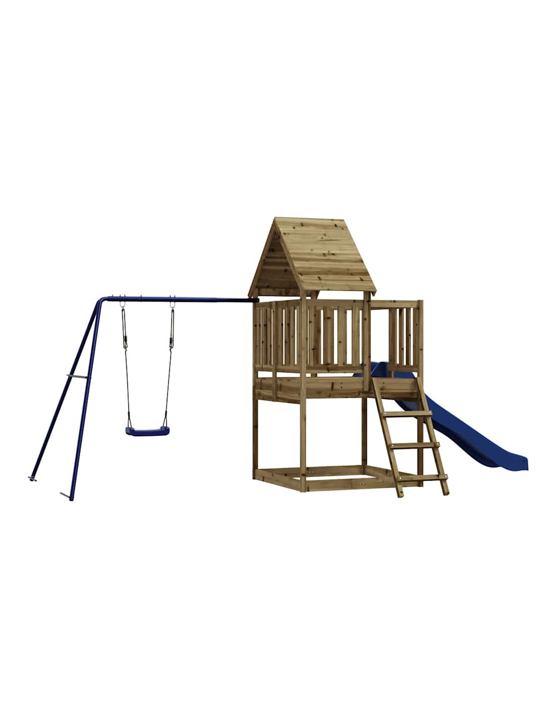 - Materiale resistente: questo parco giochi da giardino è realizzato in legno di pino impregnato sottovuoto. Il legno massello di pino è un bellissimo materiale naturale. Il legno di pino ha le venature dritte e i nodi conferiscono al materiale il suo caratteristico aspetto rustico. L'impregnazione è un processo di conservazione eseguito utilizzando le autoclavi. Il trattamento a pressione aumenta la resistenza alla decomposizione e agli agenti atmosferici.