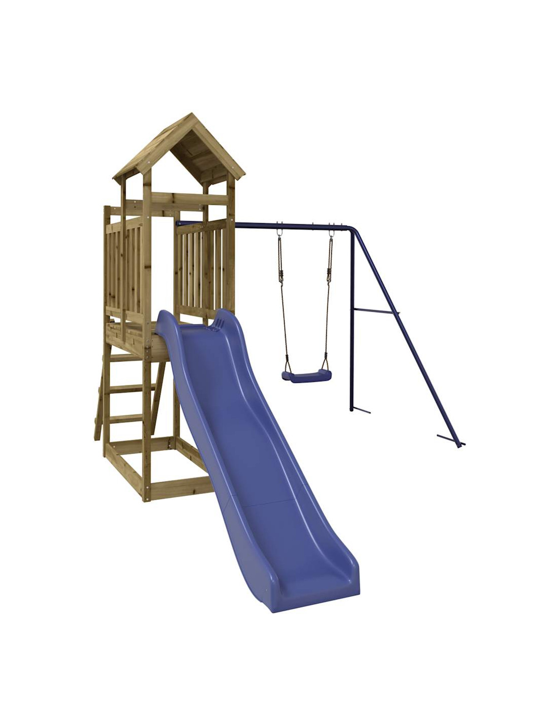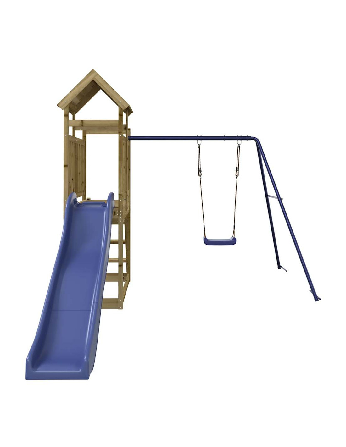 - Materiale resistente: questo parco giochi con scivolo è realizzato in legno di pino impregnato sottovuoto. Il legno massello di pino è un bellissimo materiale naturale. Il legno di pino ha le venature dritte e i nodi conferiscono al materiale il suo caratteristico aspetto rustico. L'impregnazione è un processo di conservazione eseguito utilizzando le autoclavi. Il trattamento a pressione aumenta la resistenza alla decomposizione e agli agenti atmosferici.