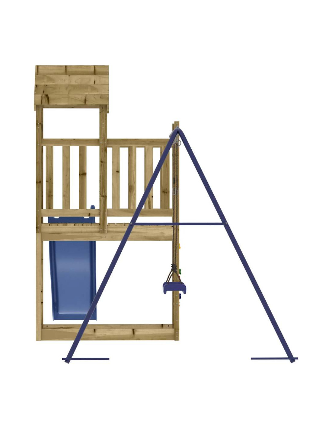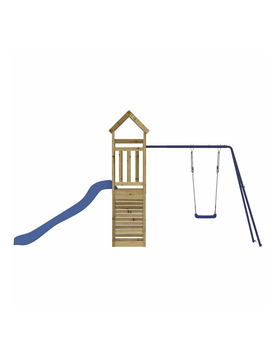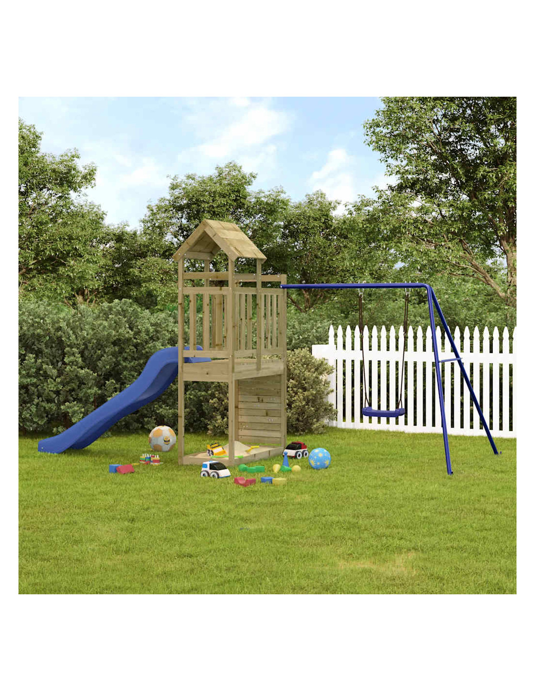 - Materiale resistente: questo parco giochi da giardino è realizzato in legno di pino impregnato sottovuoto. Il legno massello di pino è un bellissimo materiale naturale. Il legno di pino ha le venature dritte e i nodi conferiscono al materiale il suo caratteristico aspetto rustico. L'impregnazione è un processo di conservazione eseguito utilizzando le autoclavi. Il trattamento a pressione aumenta la resistenza alla decomposizione e agli agenti atmosferici.