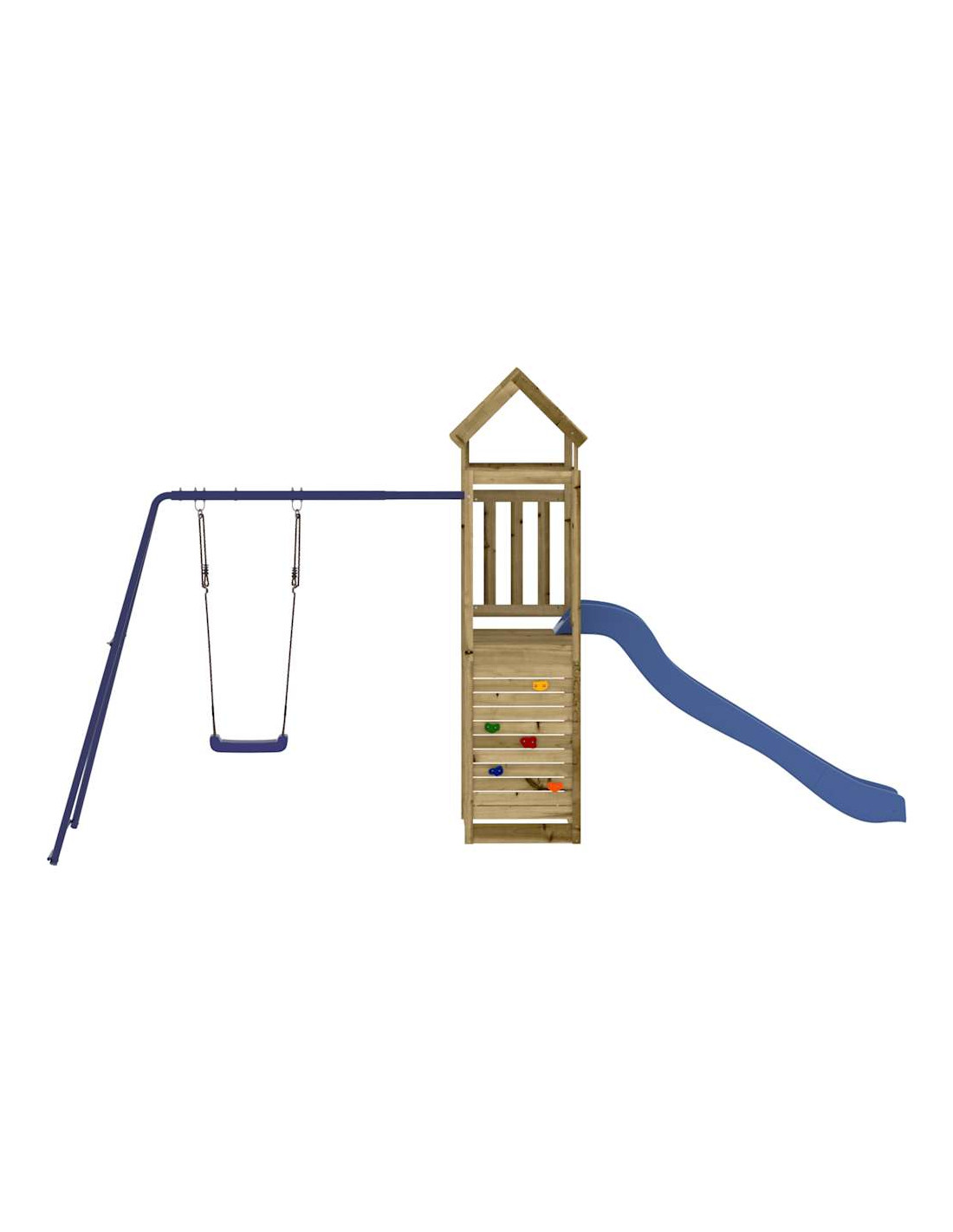- Centri multiattività: Il parco giochi è dotato di una piattaforma di 90 cm di altezza e si distingue per la parete da arrampicata, lo scivolo ondulato, un'altalena singola e una sabbiera. I vostri piccoli possono anche invitare i loro amici a unirsi al divertimento.
