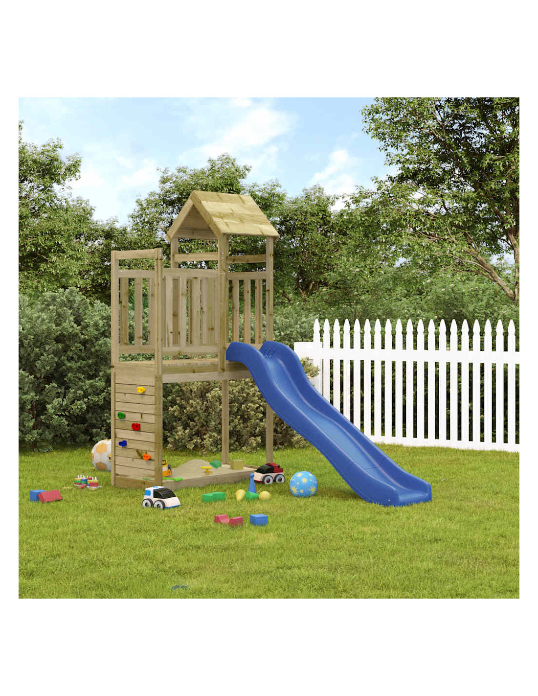 - Materiale resistente: questo parco giochi con scivolo è realizzato in legno di pino impregnato sottovuoto. Il legno massello di pino è un bellissimo materiale naturale. Il legno di pino ha le venature dritte e i nodi conferiscono al materiale il suo caratteristico aspetto rustico. L'impregnazione è un processo di conservazione eseguito utilizzando le autoclavi. Il trattamento a pressione aumenta la resistenza alla decomposizione e agli agenti atmosferici.