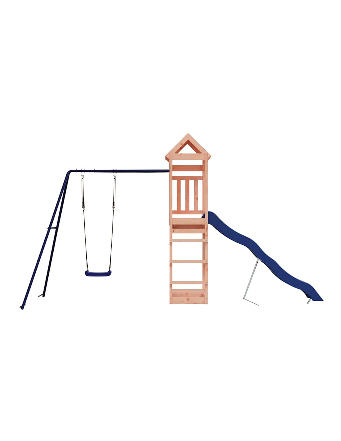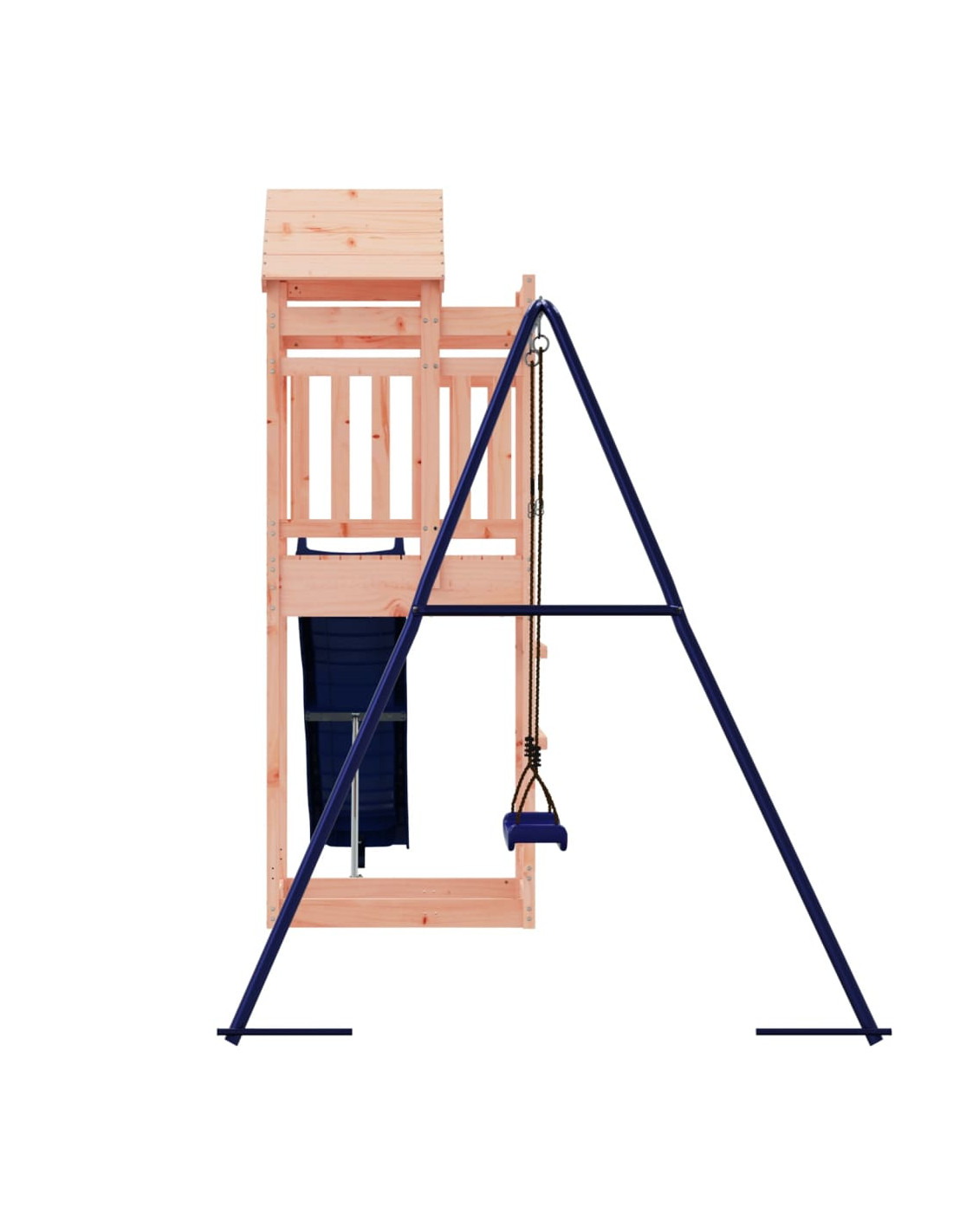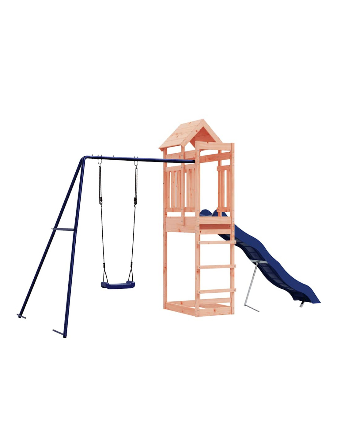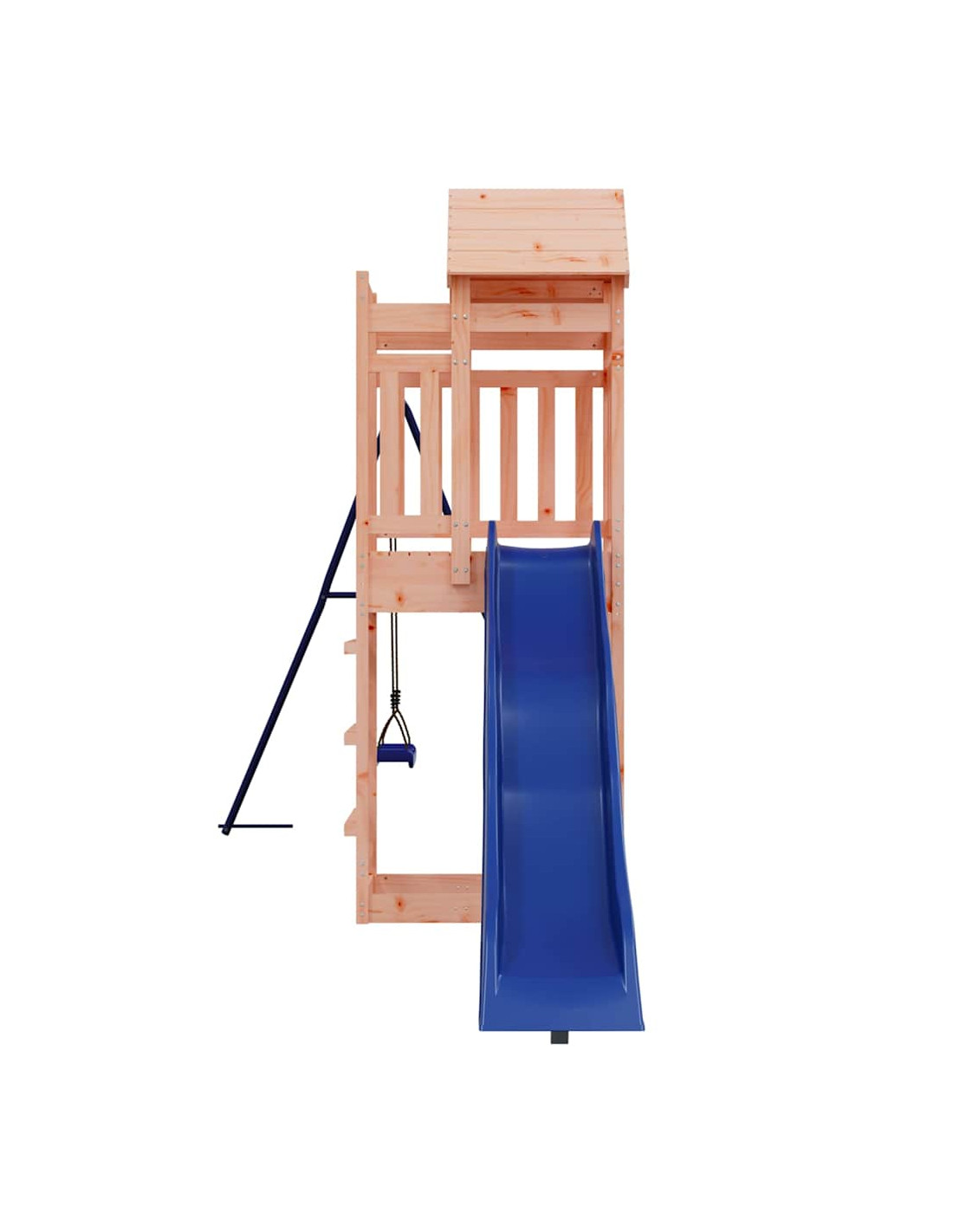 - Legno massello di douglas: questo parco giochi da giardino è realizzato in legno massello di douglas. Il legno massello di douglas è un legno molto resistente che funziona bene per l'esterno. Il legno di douglas è anche abbastanza resistente da necessitare la minima manutenzione, anche sotto l'influenza degli agenti atmosferici.