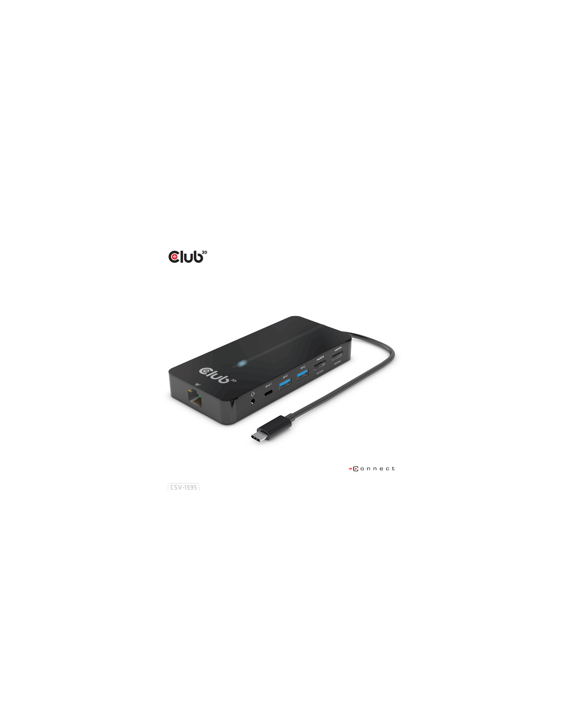CLUB3D CSV-1595. Interfaccia host: USB 3.2 Gen 1 (3.1 Gen 1) Type-C, Fornitura di alimentazione USB fino a: 100 W. Velocità trasferimento Ethernet LAN: 10,100,1000 Mbit/s. Colore del prodotto: Nero, Tipologia HD: 4K Ultra HD, Tempo massimo di refresh: 60 Hz. Voltaggio di uscita: 5 V, Corrente d'uscita: 1,5 A, Consumo energetico (max): 7,5 W. Larghezza: 140 mm, Profondità: 65 mm, Altezza: 19 mm